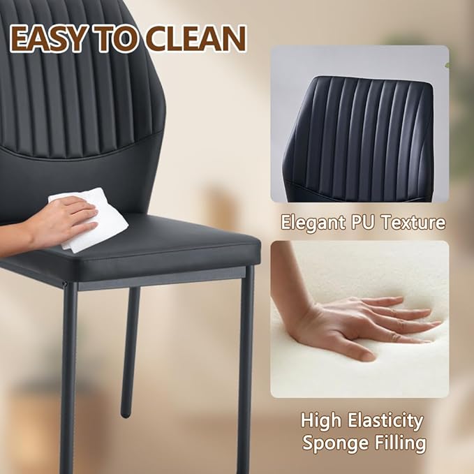 - Ergonomic Comfort: The kitchen table chairs set of 6 includes PU leather seats filled with high‑density foam for softness and breathability. Metal chair legs provide stability and adjustable feet ensure balance, making this dining table chairs set of 6 perfect for long meals