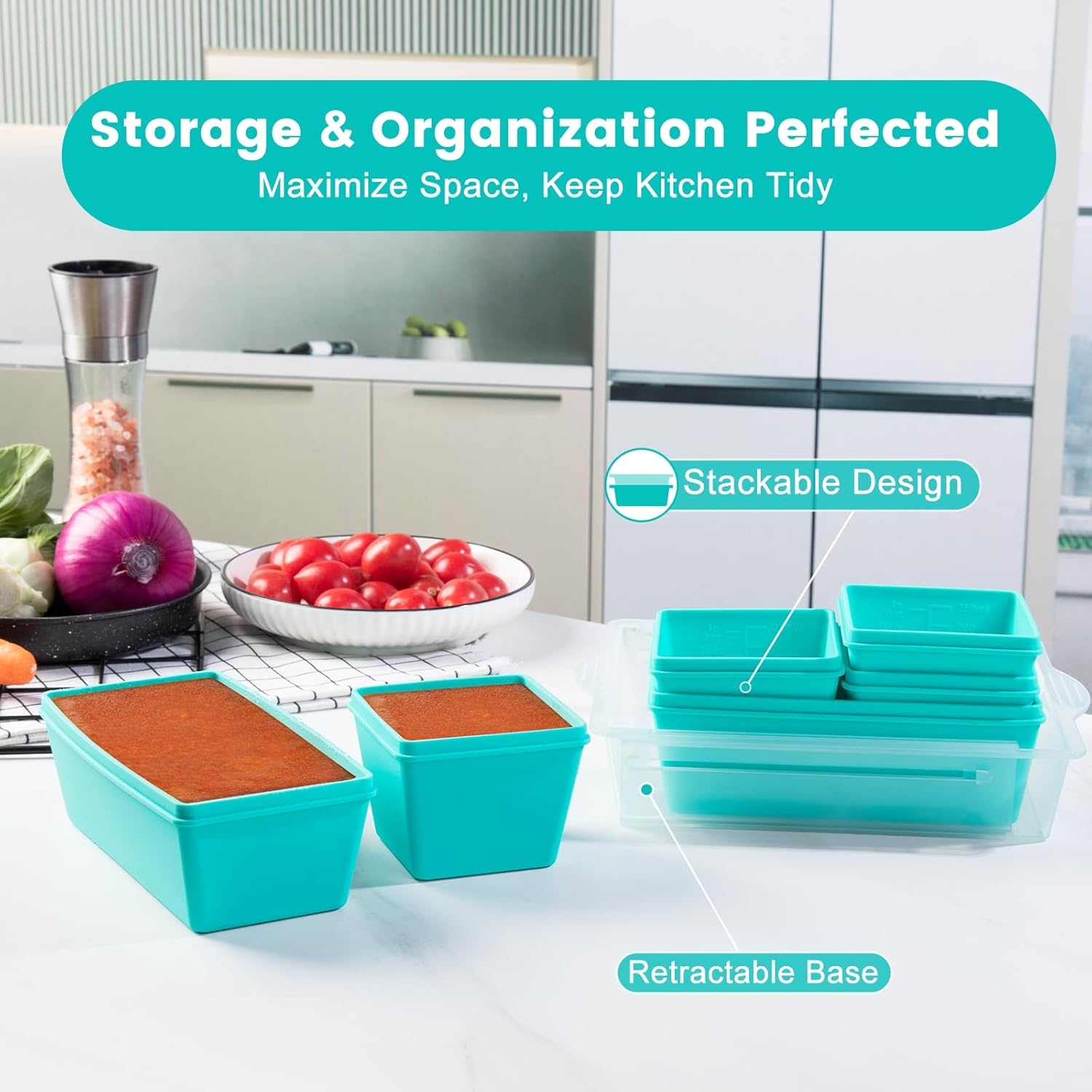 - Space-Saving & Organized Storage: Features a retractable reinforced base for stable food transport and an adjustable sizing system to conform to fridge space. These stackable silicone freezer trays consolidate fridge/freezer storage efficiently
