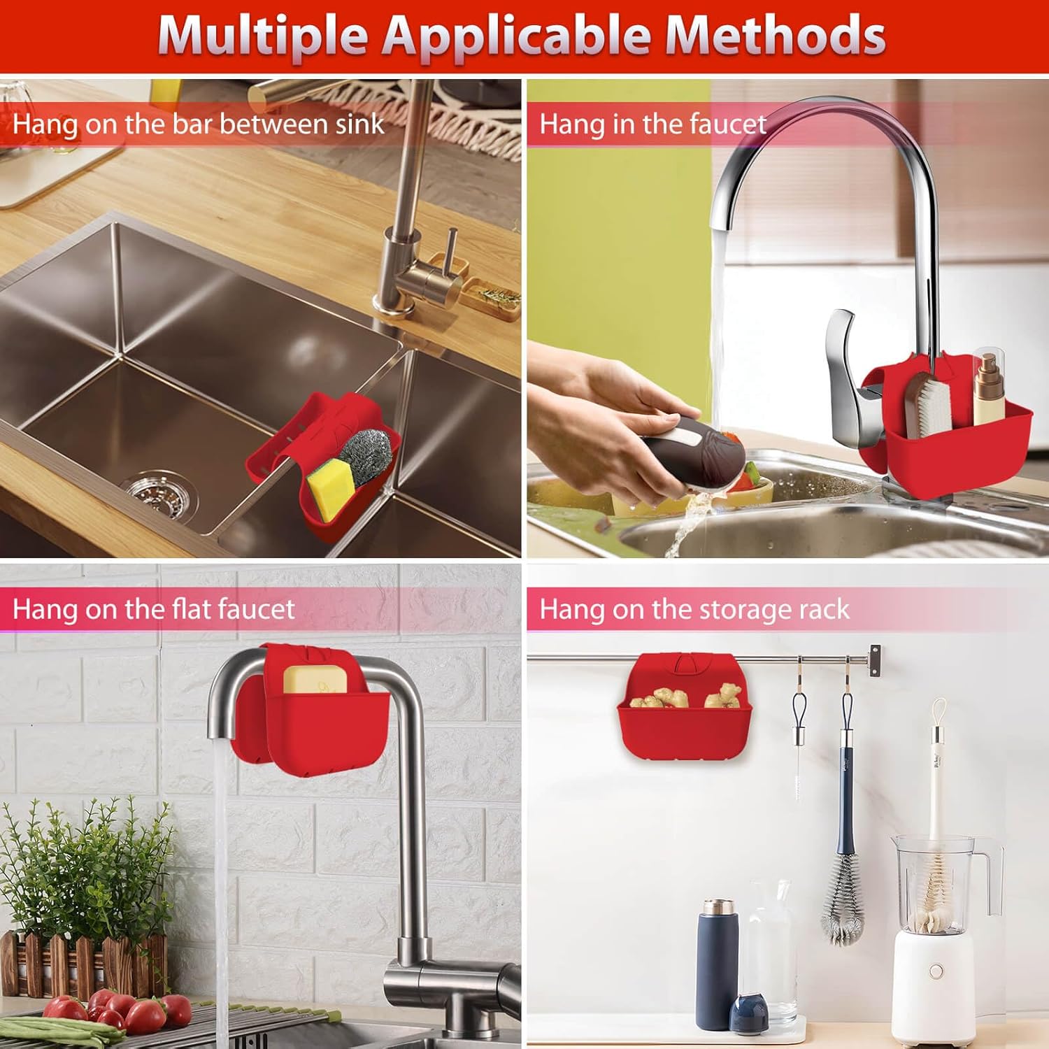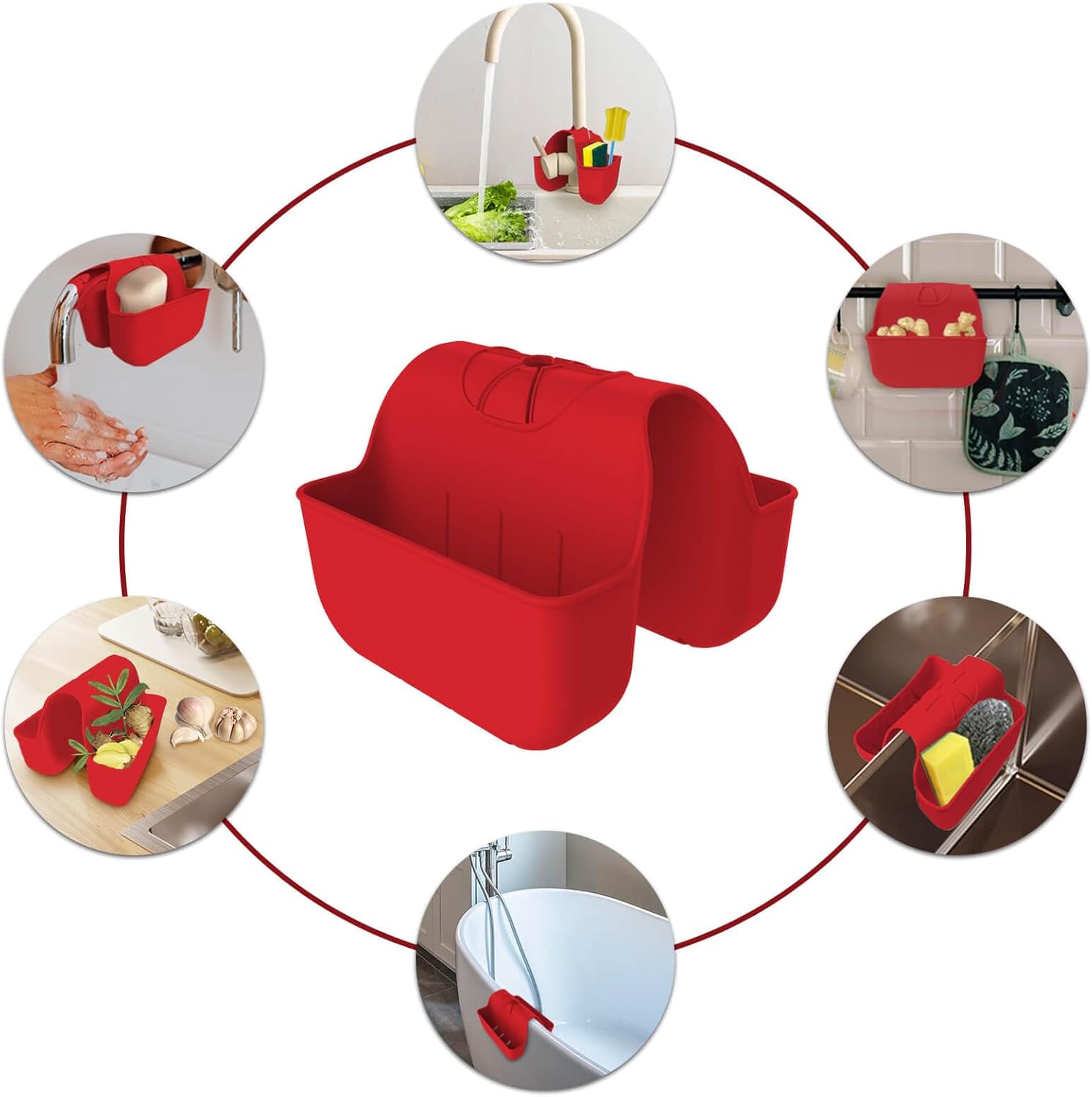 Sponge Holder for Kitchen Sink, Silicone Sink Saddle Caddy Organizer Rack, Sponges Holder Over Faucet, Hanging Kitchen Organizer Accessories Rack Basket Red