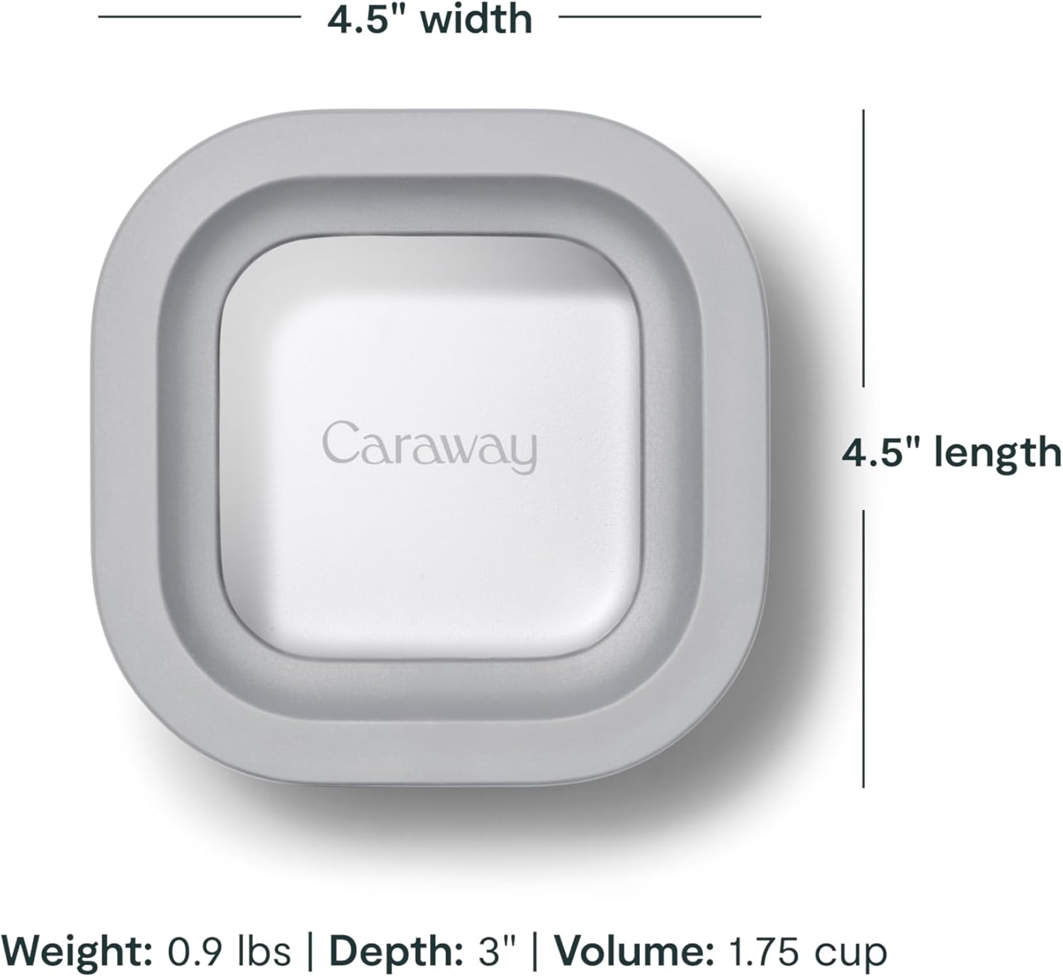 Caraway 6pc Food Storage Container Set - 1.75 Cup Glass Storage Container for Food (6) - Non-Toxic Ceramic-Coated Glass - Air Release Technology - Compact & Stackable Design - Gray