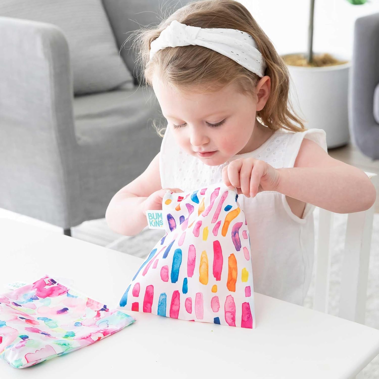 Bumkins - Cloth Snack & Sandwich Bags - For Storage, Travel, Food Prep, Lunch - Reusable, Water Resistant, Dishwasher Safe - Snack Bags for Kids - Zipper Closure - Watercolors & Brushstrokes - 4 Pack