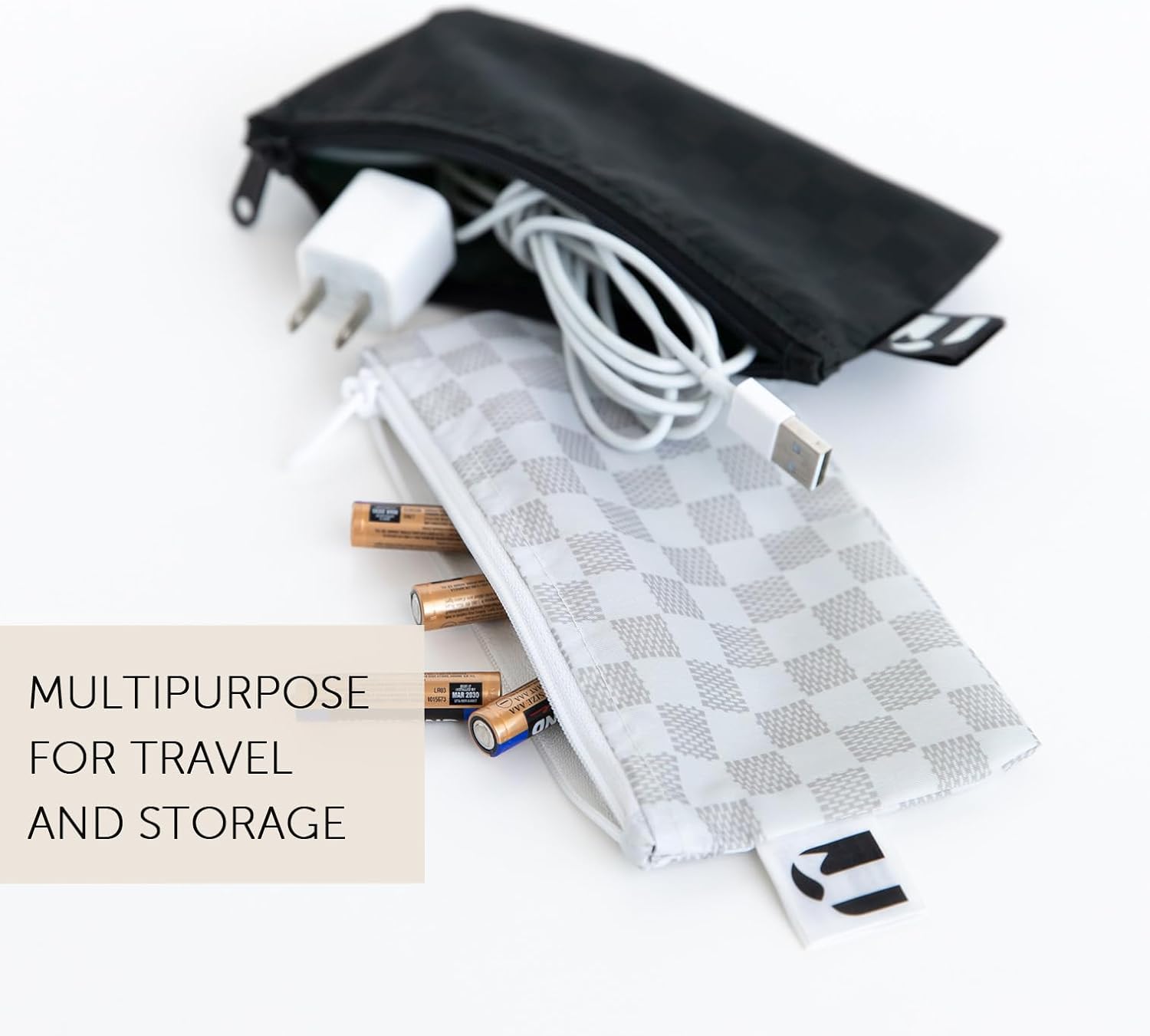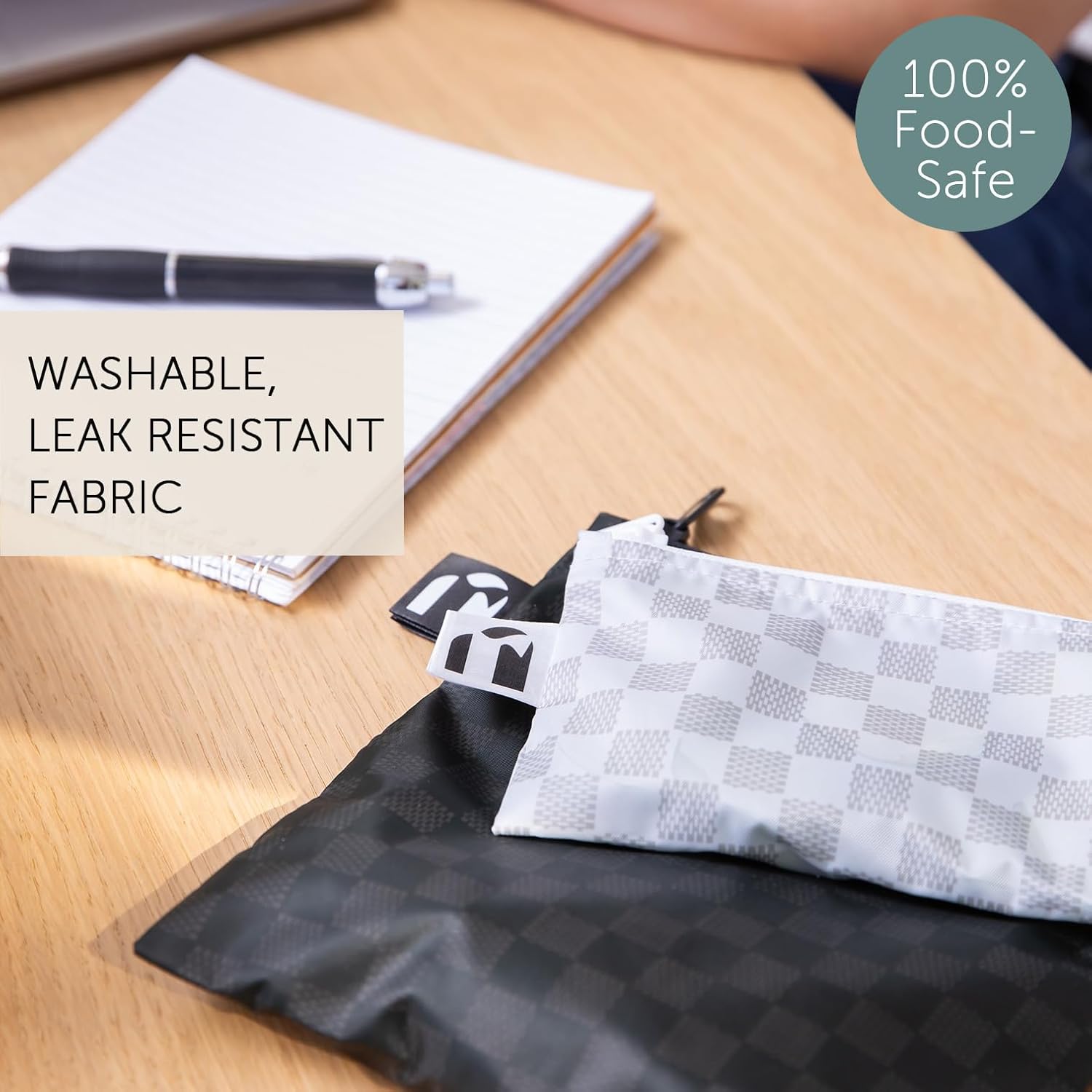 Roamio Reusable Sandwich and Snack Bags, for Kids School Lunch and for Adults Portion, Washable Fabric, Waterproof Cloth Zip Bag, Travel Pouch, Food-Safe Storage,4-pack Set Black Check and Off White