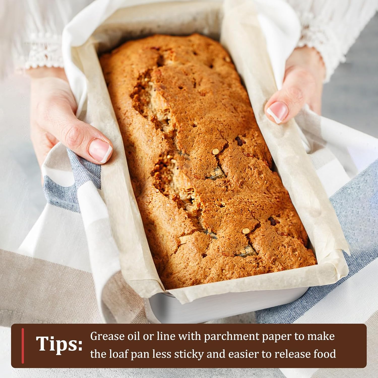 - EFFORTLESS RELEASE & CLEAN: This large bread tin is processed with brushed finish which ensures for a less-sticky surface for easy food release and less food residue, Rounded corners with no dead angle to avoid food accumulation, Super easy to clean by hand and dishwasher safe for less work (Recommended using parchment paper or greasing oil for easier release)