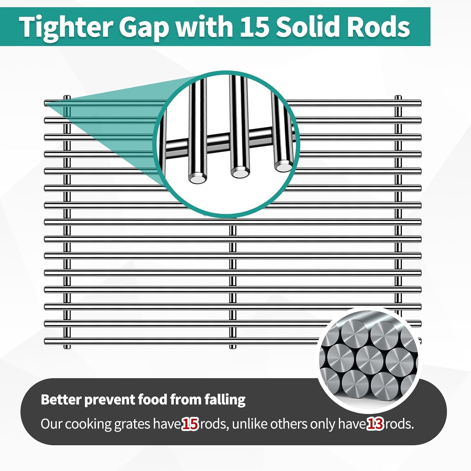 9MM 17.5" Stainless Steel Grill Grates for Weber Spirit E-310 E315 E320 E330 S310 S315 S330 GS4 Spirit 2 Grill Replacement Parts for Weber 7638, 7639 Spirit 300 Spirit II 300 Series Grills
