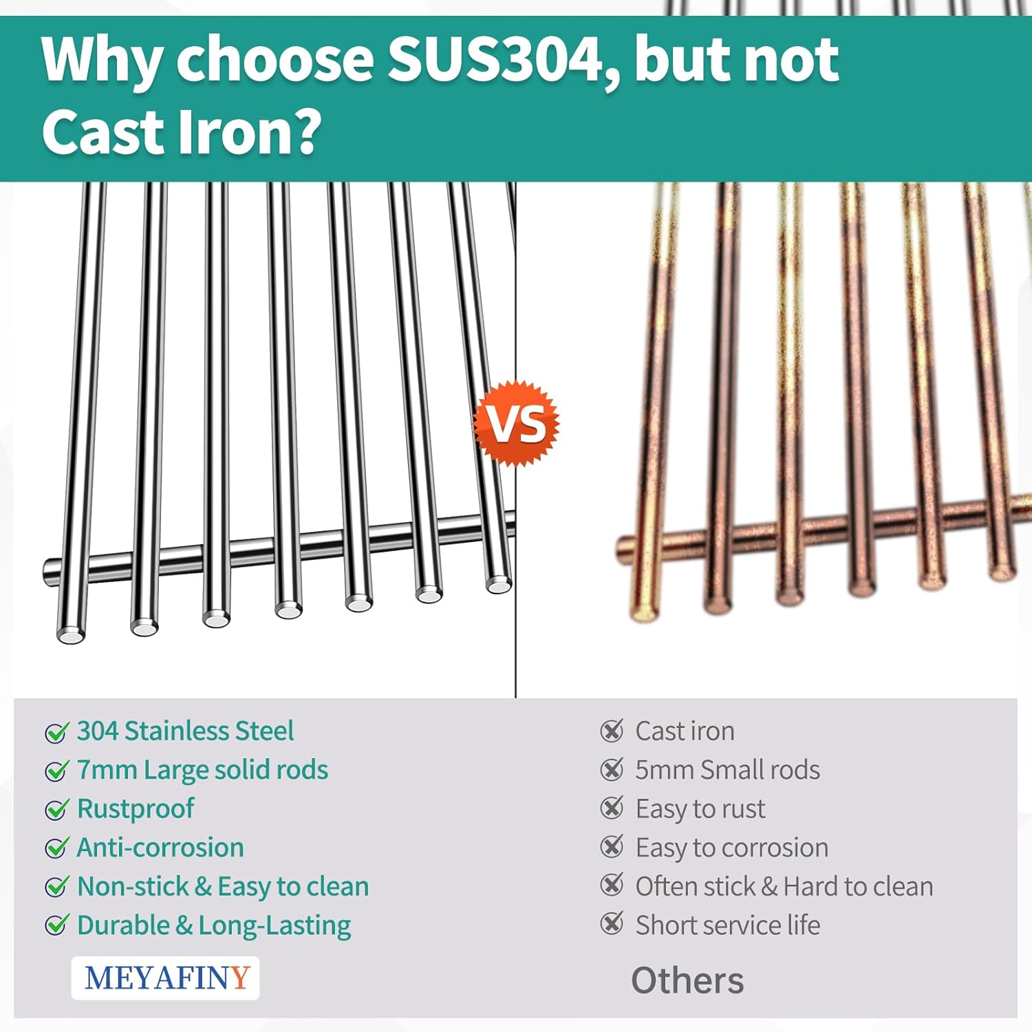- 【Safe Material & Protect Your Hands】Meyafiny grill replacement parts are made of high-quality 100% food grade 304 heavy stainless steel and well-engineered to prevent rust, which is durable with uniform heating and high corrosion resistance, much more heavier and heavy duty. Our cooking grill grate with edge grinding design is free of sharp edges, made with nice welds and smooth surface, no sharp edges and will not hurt your hands. Best choice for your weber genesis ii grills.