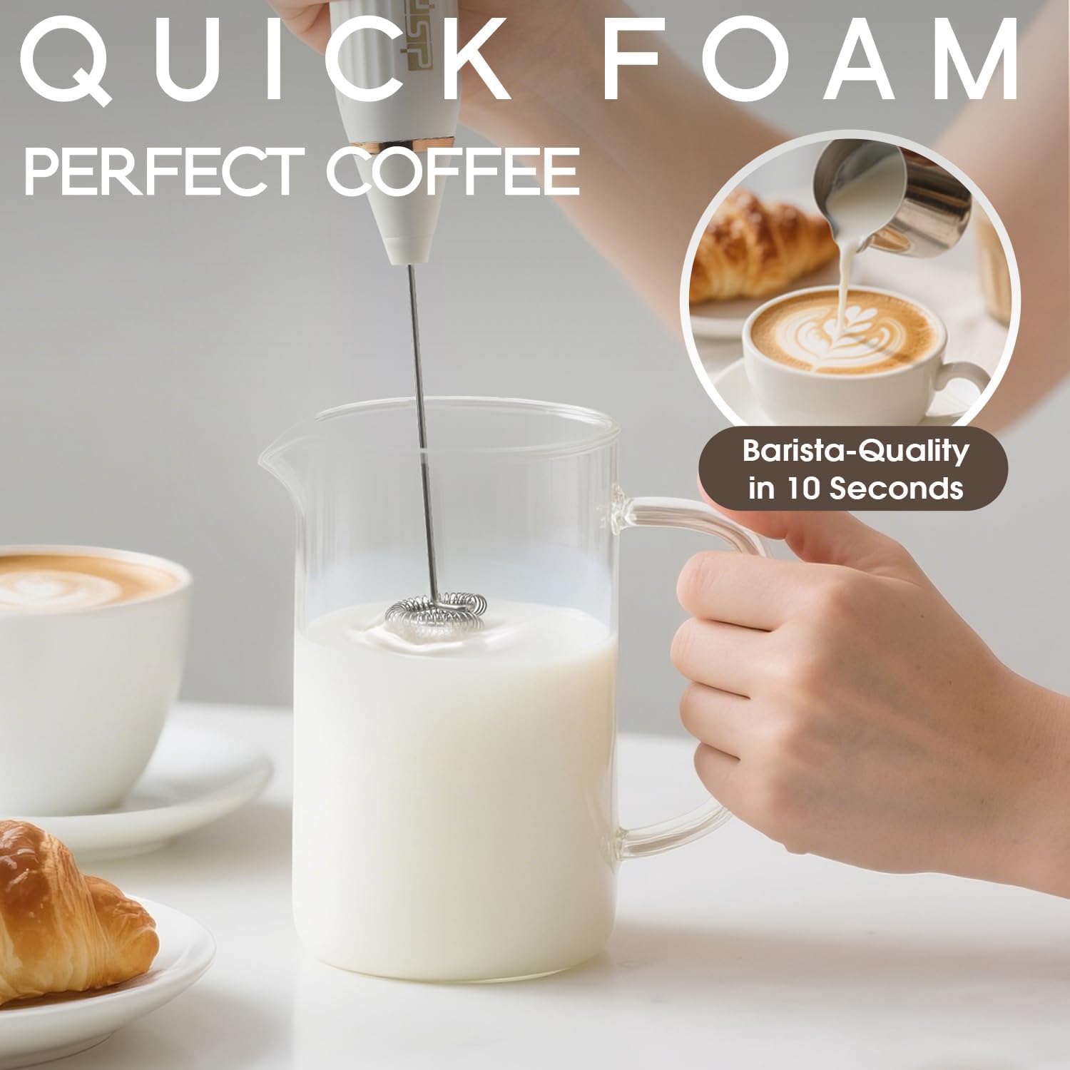 DSP Electric Whisk Rechargeable with Egg whisk milk frothing bar, 3 Speed Adjustable, Milk Frother Handheld for Latte, Cappuccino (White)