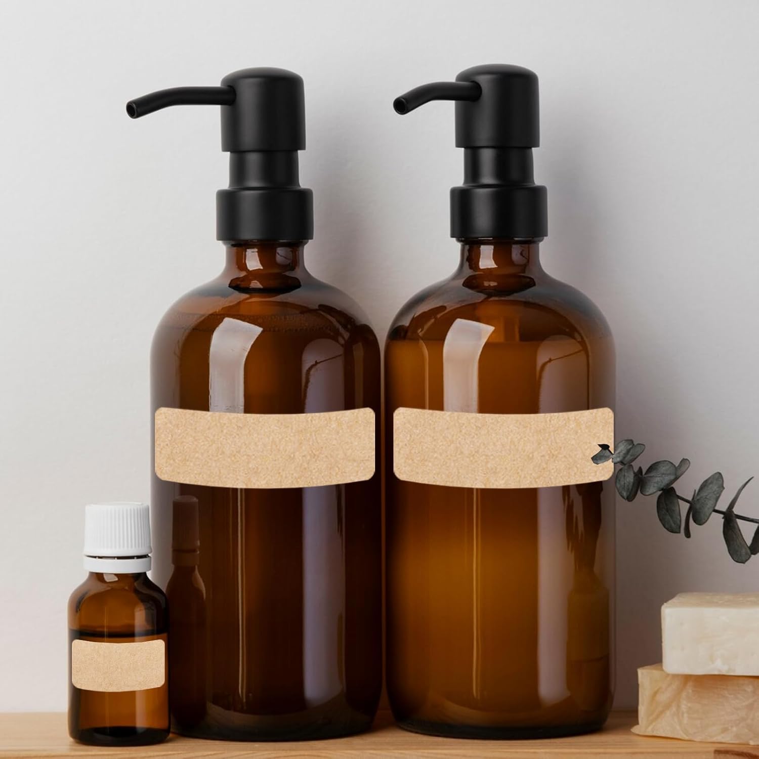 Kraft Label Stickers Removable Writable Gift Labels, Self-Adhesive Brown Labels for Essential Oil Bottle, Jars, Food Storage or Gift Decoration (2 Size, 300 Sheet)