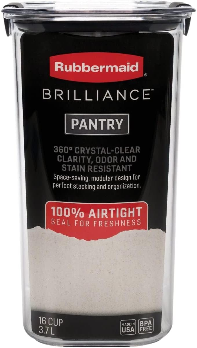 Rubbermaid Brilliance Food Storage Container, 16-Cup, Airtight | Clear/Grey | For Pantry Organization | Pack of 2