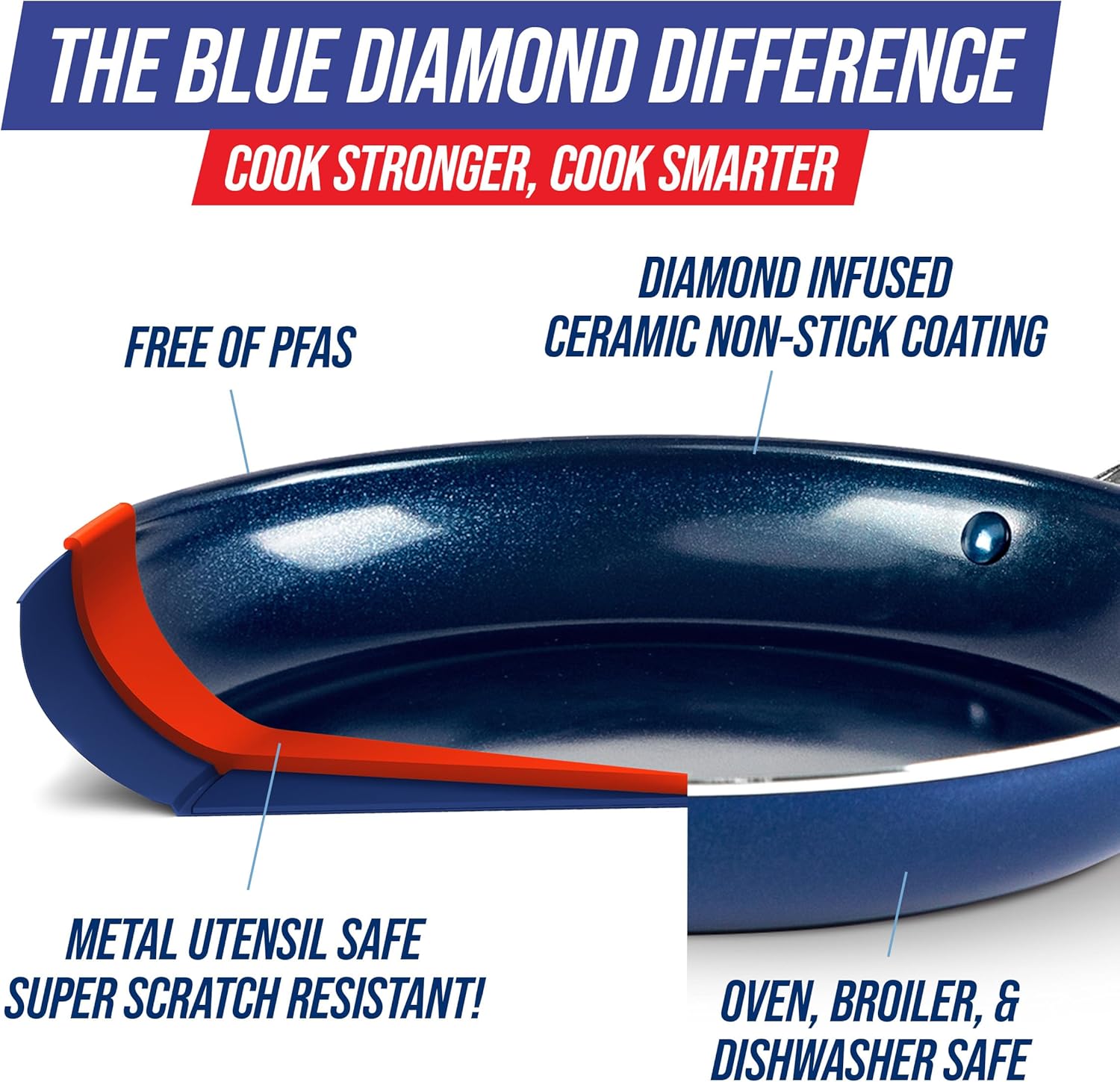 - DIAMOND-TOUGH EXCELLENCE: Metal utensil safe surface with diamond-infused ceramic nonstick - 5x harder and 10x longer lasting than traditional coatings. Tough enough for your toughest recipes!