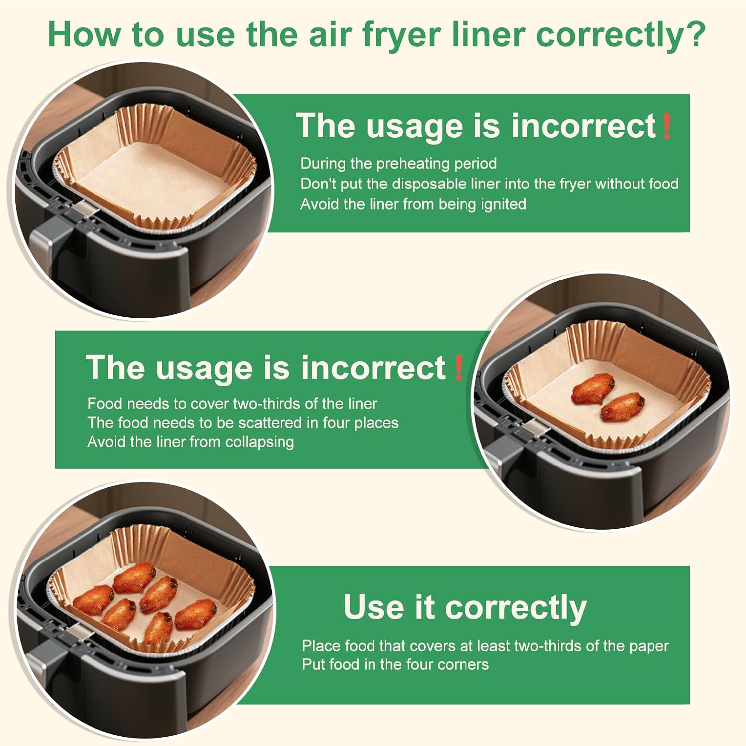 - Time-Saving Convenience – Save time scrubbing with these disposable air fryer liners. Ideal for those who use air fryer liner daily, they reduce wear on your appliance and keep it clean.