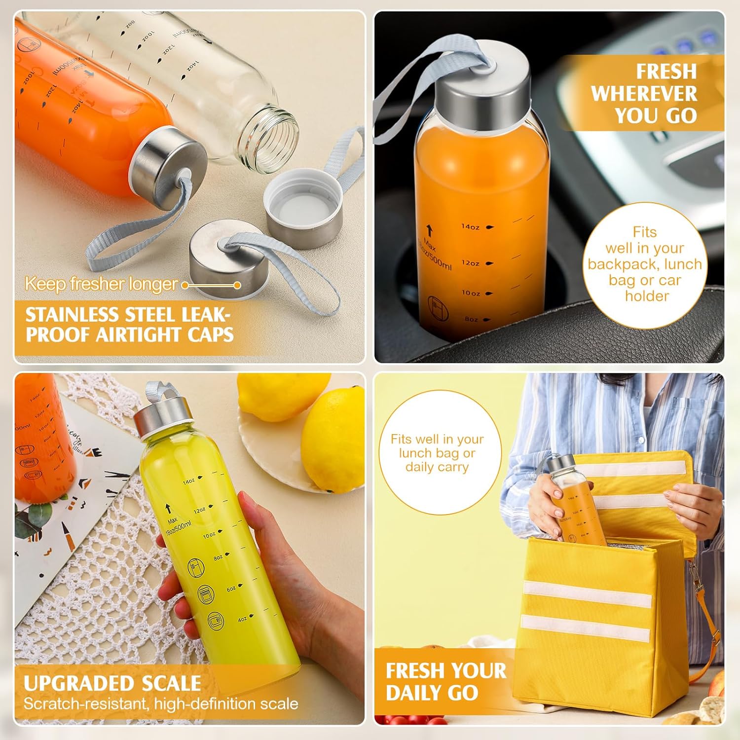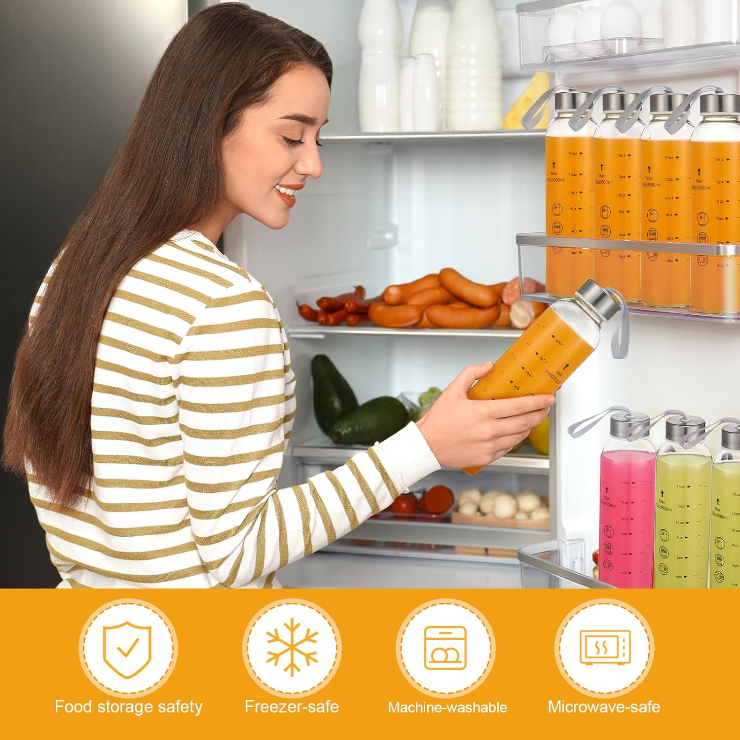 - Size Information: the maximum capacity of the reusable glass bottle is about 18 ounces; The bottle body is designed with a scale, so you can easily know the capacity of the items stored inside, and the capacity is enough to meet the needs of most situations in life; It is also light and easy to carry, which can improve your sense of happiness in life