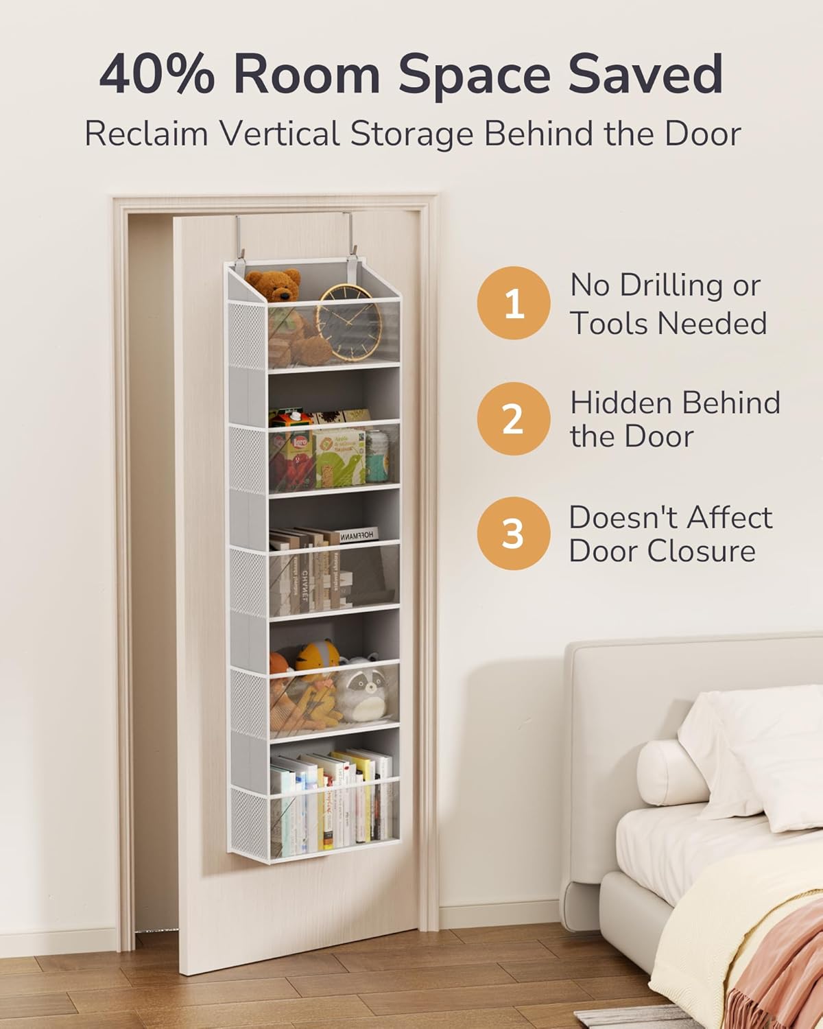 - 【Sturdy & Shape-Holding Storage】 Made of durable Oxford fabric, this closet door organizer resists tearing better than non-woven types. Reinforced with PP board bottoms and fiberglass side strips, it stays upright without sagging—ideal for structured, long-lasting storage