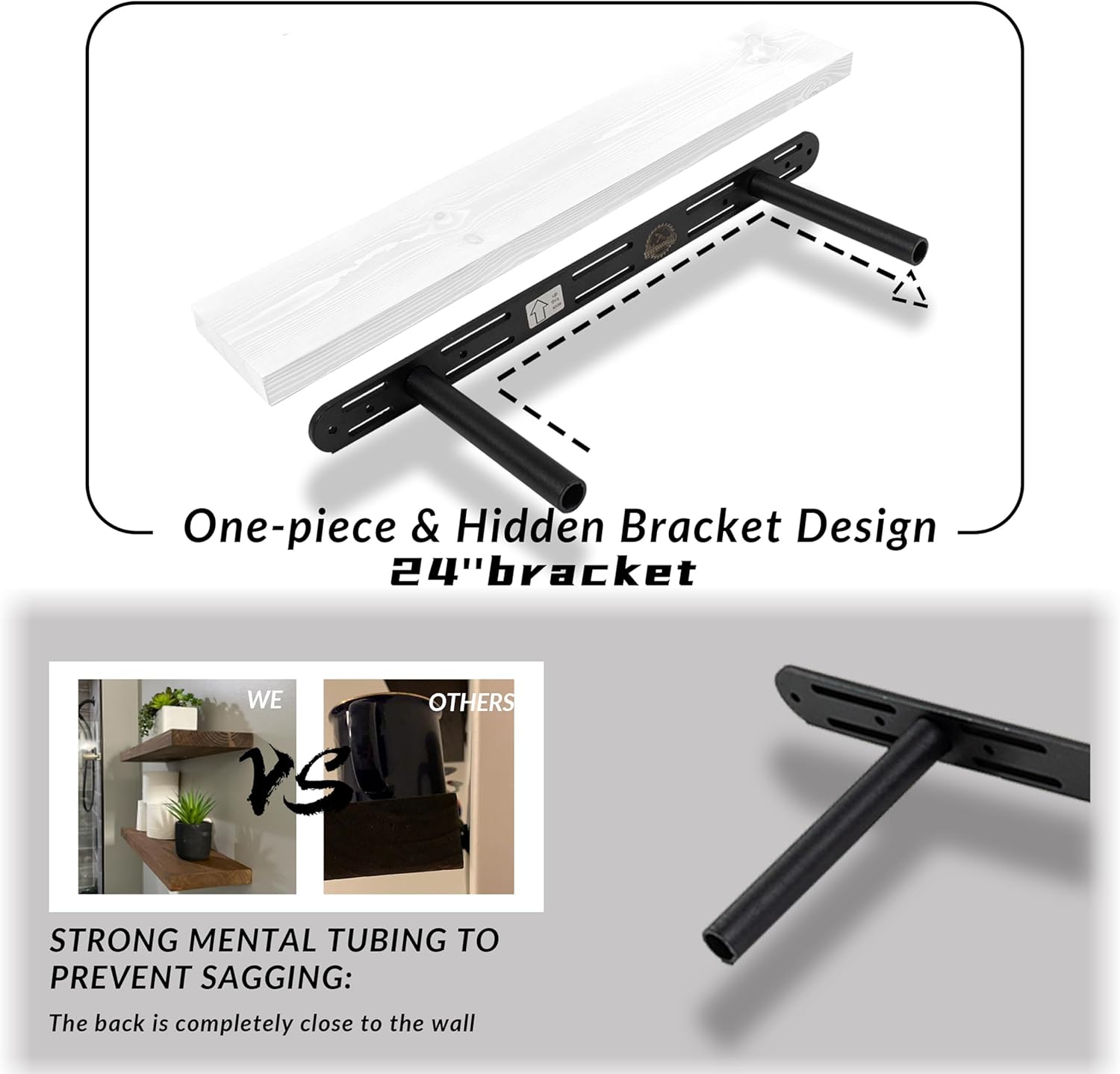 - Seamless Integration: The neutral finish of our floating shelf seamlessly integrates with a wide array of design aesthetics, making it an ideal addition to any home. Enhance your space with this functional piece that combines storage and style effortlessly.