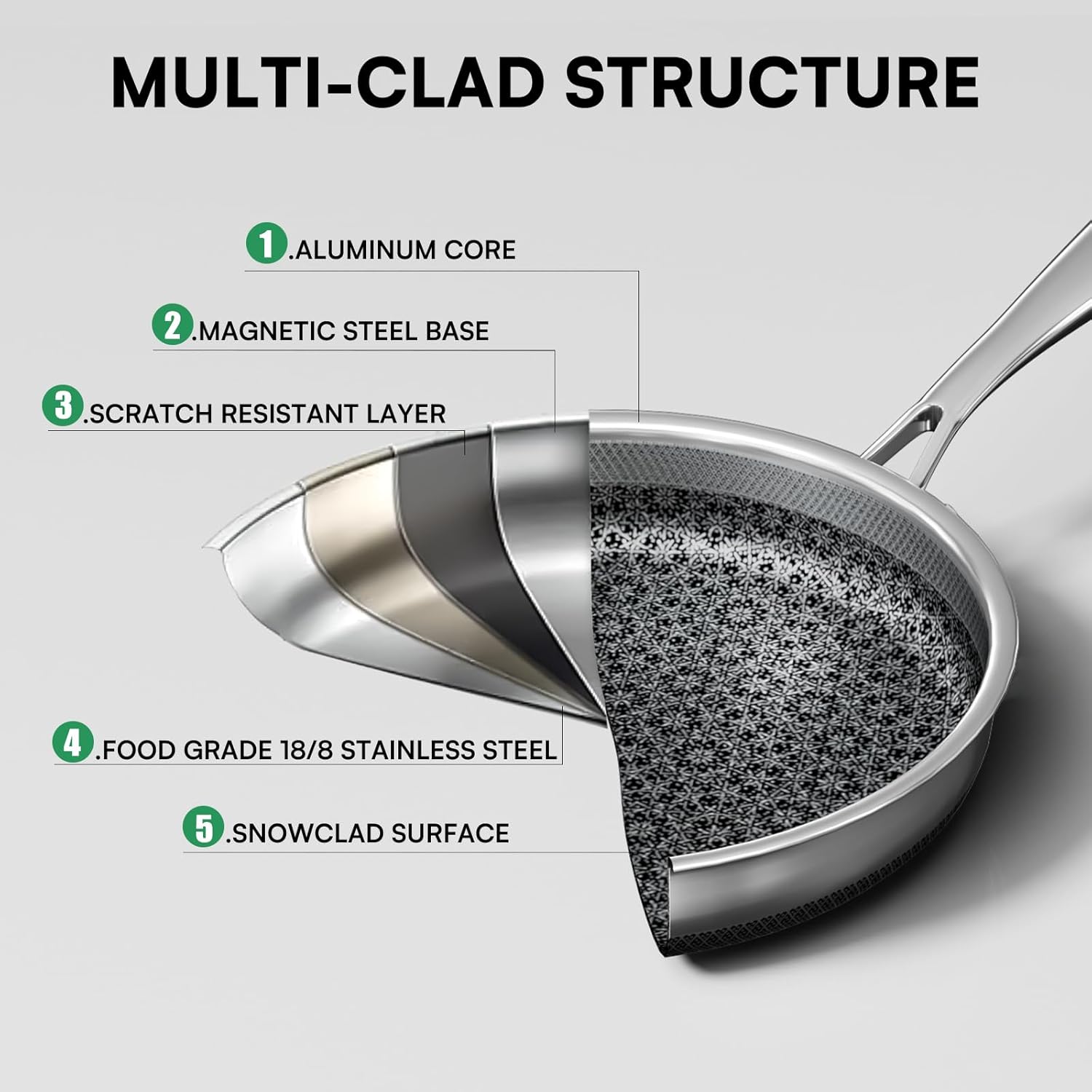 - Special Feature : 5-Layer Stainless Steel, All Stovetops Compatible, Cool Handle, Dishwasher Safe, Tempered Glass Lid