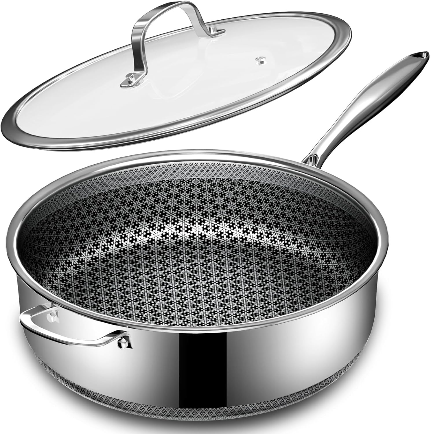 5 Qt Saute Pan with Lid, 5 Ply Stainless Steel Pan with Lid, Non Stick Frying Pans, Cooking Pot Deep Frying Pan Non-Toxic, For Induction, Oven, Dishwasher Safe