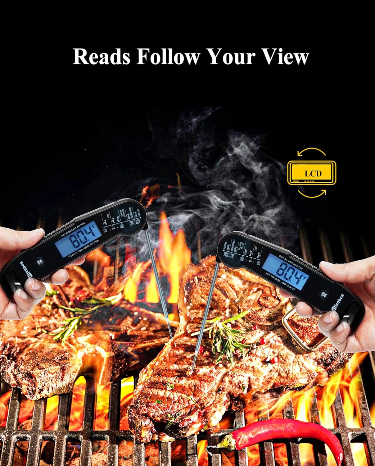 - [Easy to Store & Clean] Magnetic back attaches to grill/fridge (can also hanging). Folds to 5.9-inch (phone-sized) and weighs just 2.34oz-slips into chef pockets for ready to use. IP66 waterproof design can be directly washing under running water