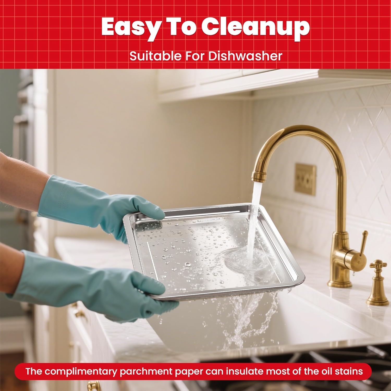 Air Fryer Basket for Oven,Air Fryer Basket and Stainless Steel Baking Tray Pant Oven with 50 Sheets Parchment Papers,Air Fryer Pan Rack for Cooking Baking Dishwasher and Broiling (1 Set M)