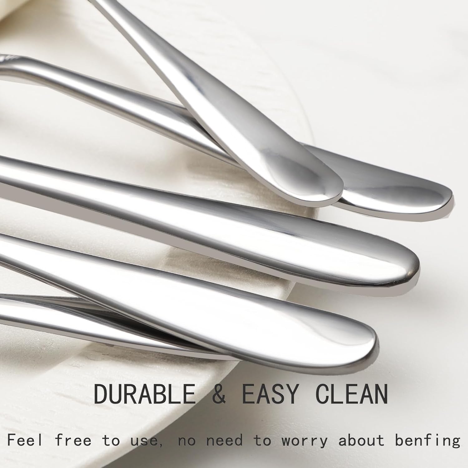 - Elegant Design: This is a very modern art style silverware set, clean lines, highly mirror polished, smooth edges, free of rough spots and edges, unique and elegant appearance would match well with your existing eating utensils, enhance your dining experience.
