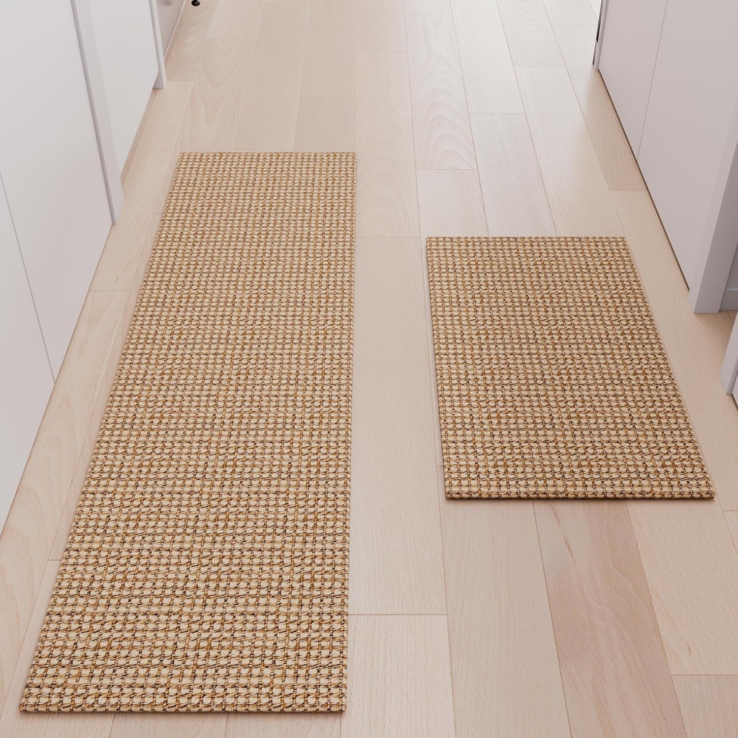 Kitchen Rugs and Mats Non Skid Washable [2PCS] (17.3" x 30"+ 17.3" x 60"), Absorbent Kitchen Floor Mats, Boho Cotton Kitchen Runner Rugs Comfort Standing Mat for Sink Hallway Laundry