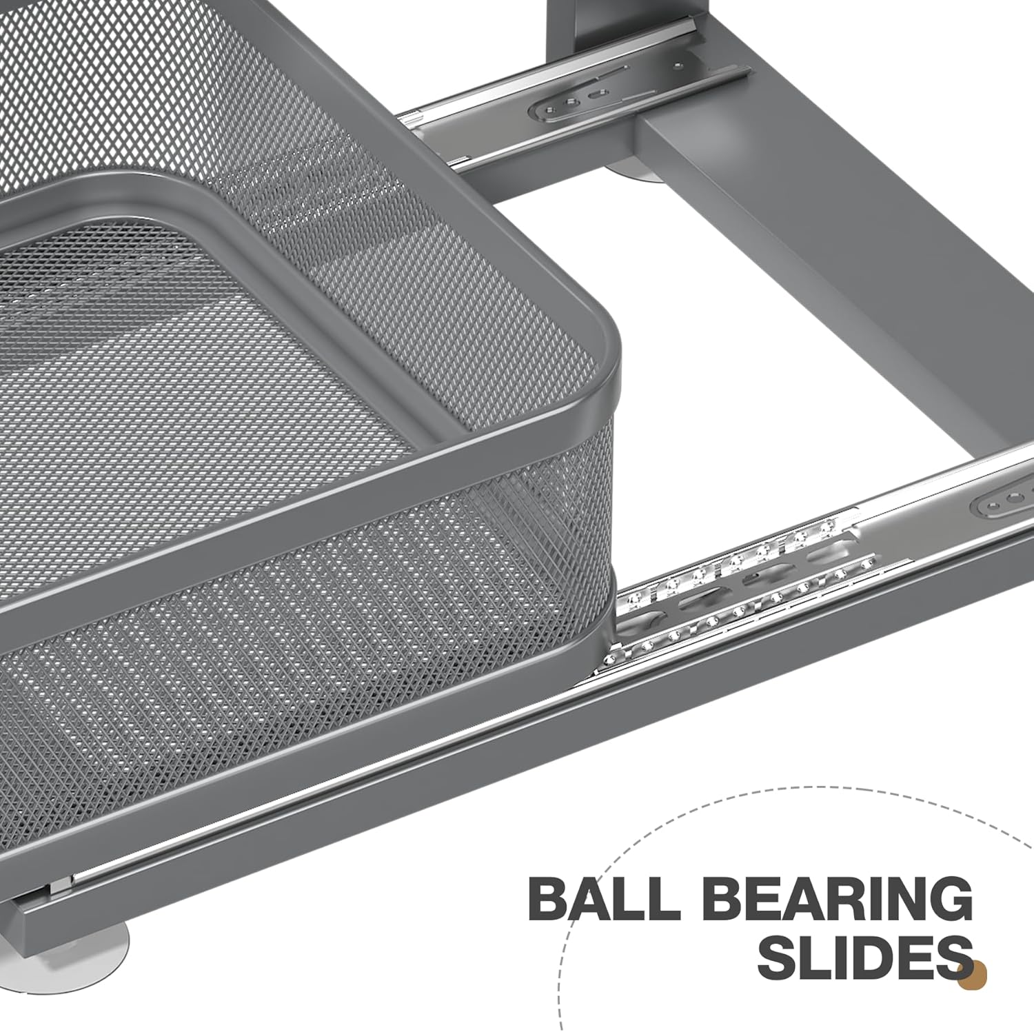 - 【Ultra-Smooth Glide】Pull out cabinet organizer features next-generation ball-bearing slides.Premium metal rails with ball bearings ensure a silky-smooth, noise-free glide, effortlessly handling heavy loads for the ultimate pull-out experience.
