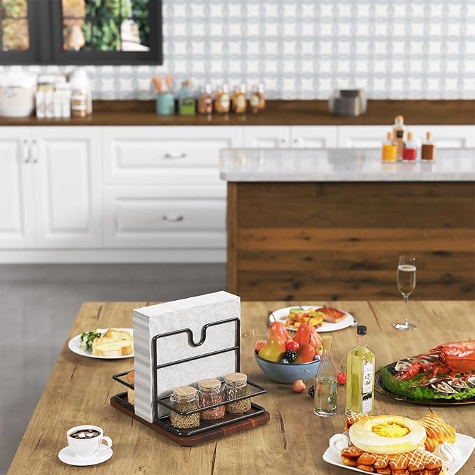 - 【 High-quality Materials 】 Our 2-in-1 napkin holder is made of wood and steel, with stable welding and a surface coating of anti-rust paint, making the napkin holder sturdy and durable.
