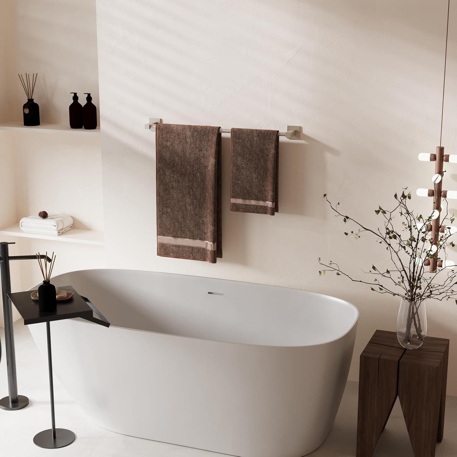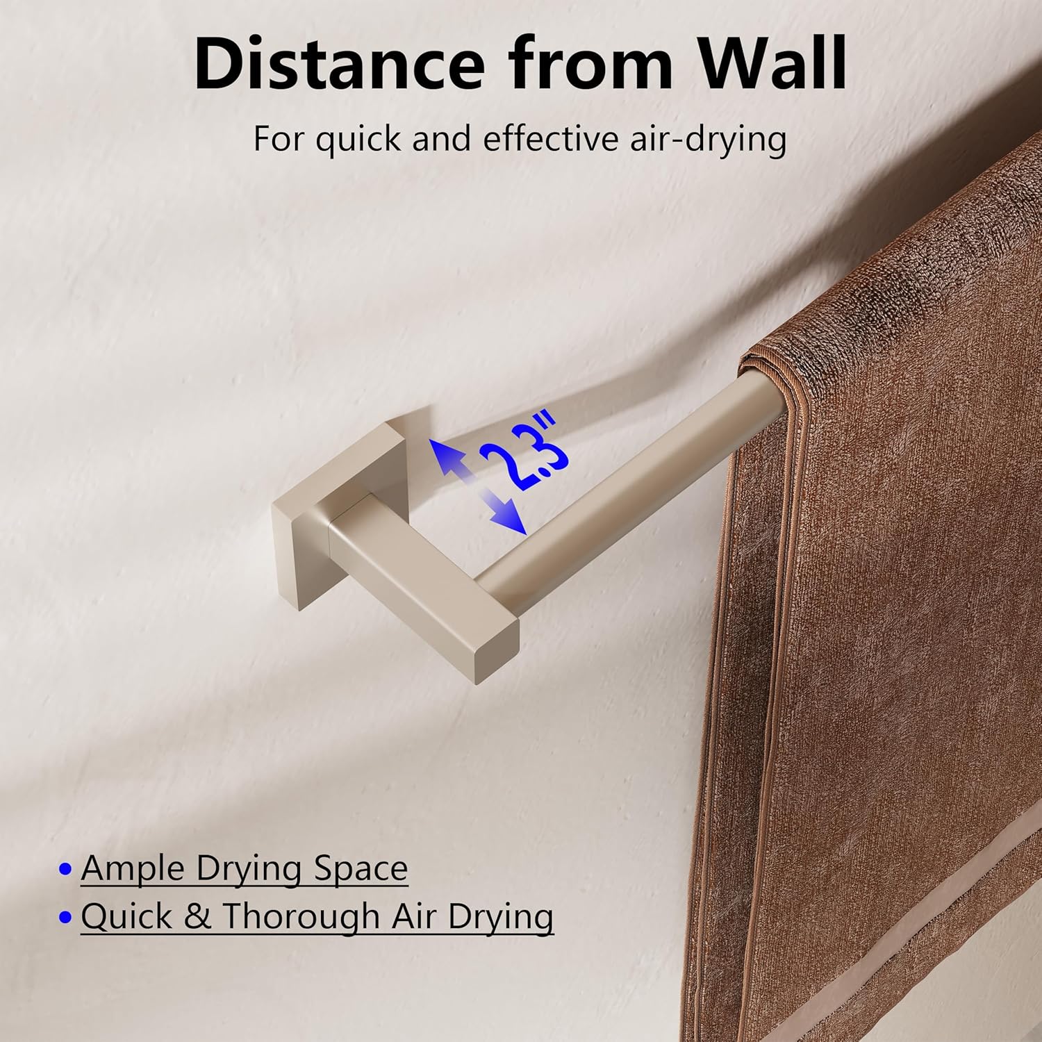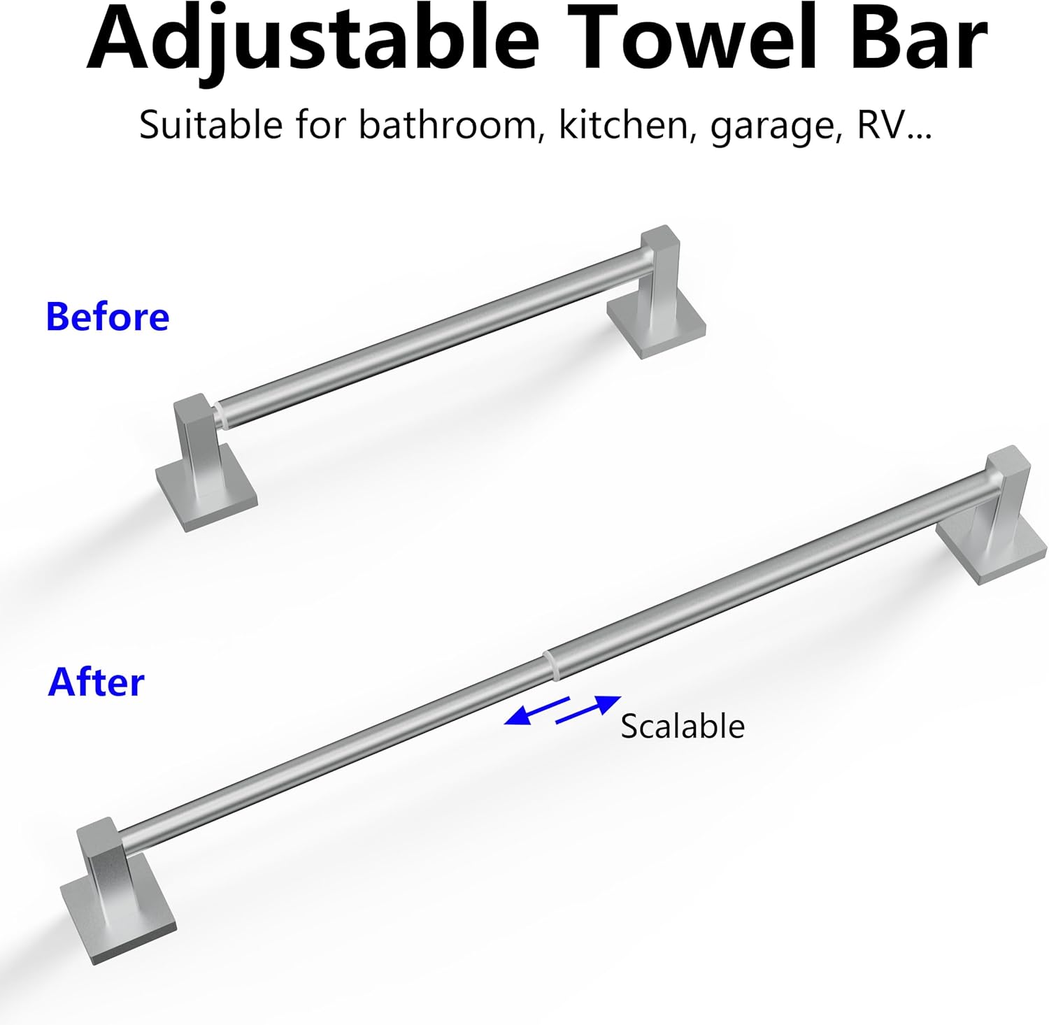 - 【Adjustable Size】 -- The towel bar can be easily adjusted from 14.4inch to 25.2inch, making it perfect for most bathroom spaces. It can easily hold multiple towels or robes, helping to keep your bathroom organized and tidy