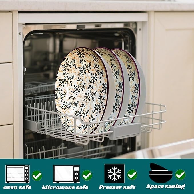 - Easy Maintenance and Cleaning: Fired at high temperatures to maximize the strength of the porcelain, The Ultra-durable glaze is sufficient to resist the scratches of the knives and forks at 1000 grams of pressure, won't absorb stains, ensuring that they look great and maintain their bright colors over time,The smooth glaze on the plates makes them easy to clean, either by hand or in a dishwasher.