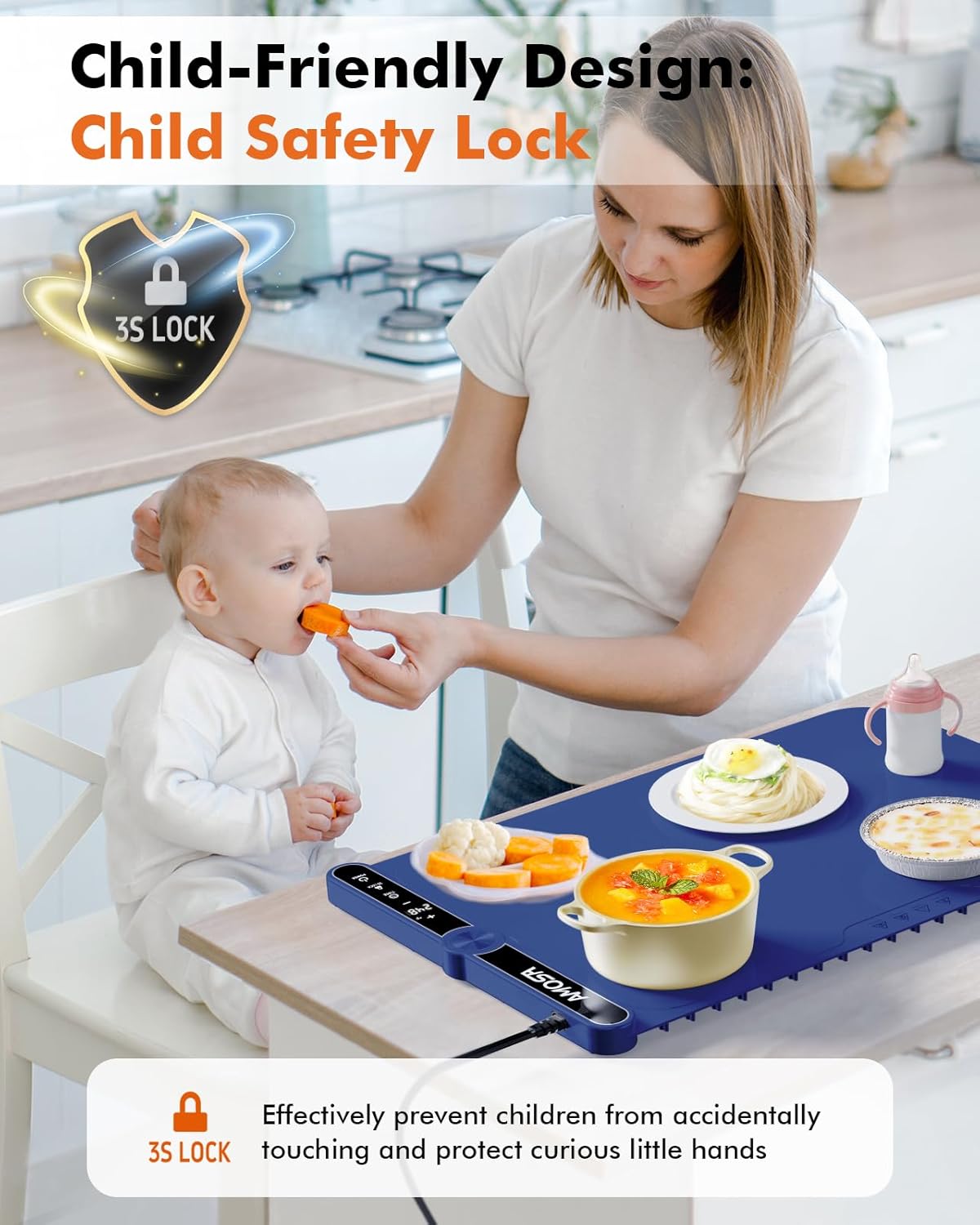 - 【What You Get】AMOSA Electric Food Warmer*1, Power Cord*1, Silicone Straps*1, Storage Bag*1, Placemat*1, User Manual*1, AMOSA up to 24-month after-sales service, and 7-day/24-h friendly customer service. If you have any problems, we will 100% solve them.