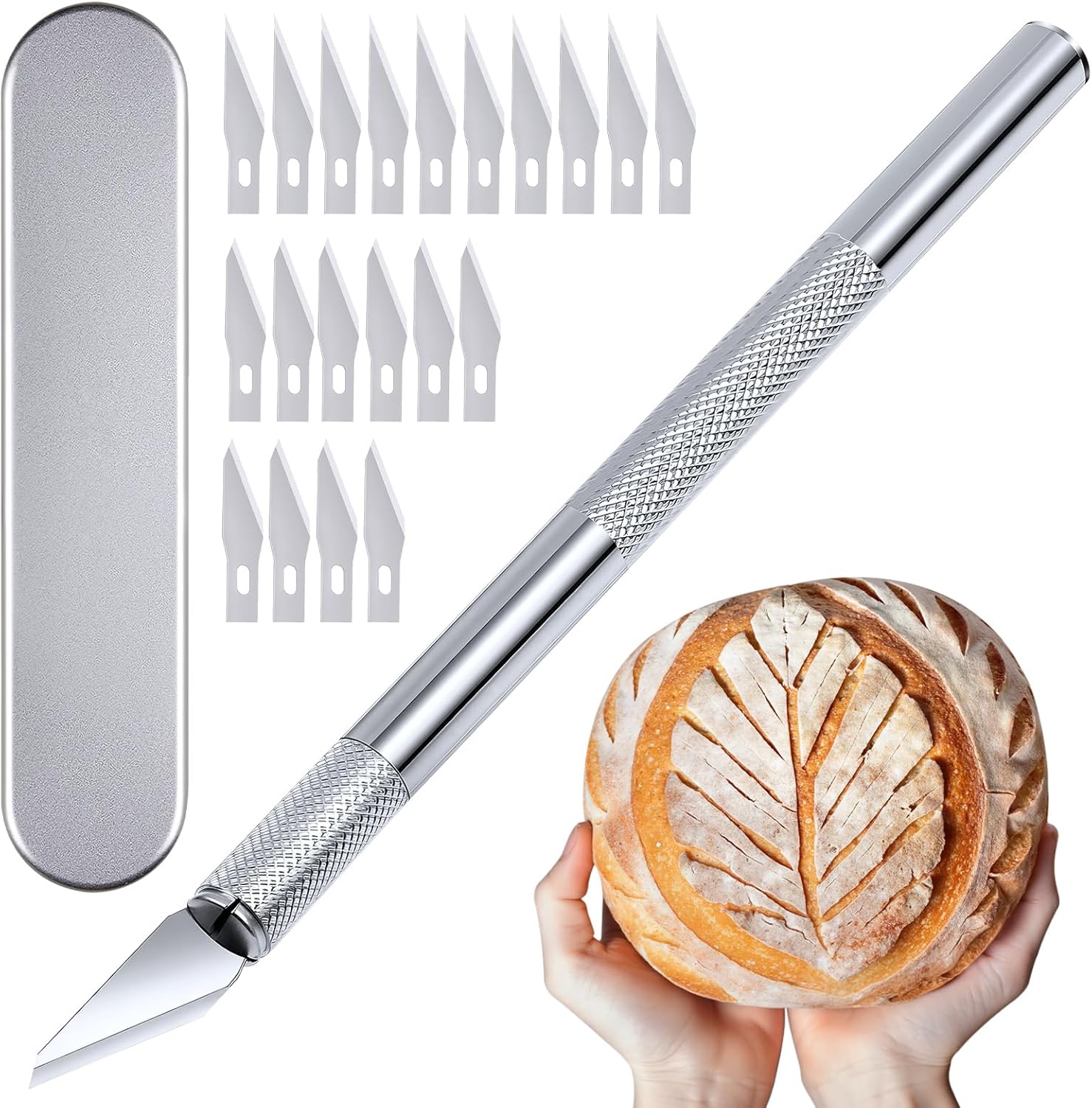 Bread Lame Dough Scoring Tool – Artisan Sourdough Scoring Knife Kit with 21 Replaceable Razor Blades & Ergonomic Stainless Steel Handle, Premium Aluminum Storage Case for Home Bakers & Gifts