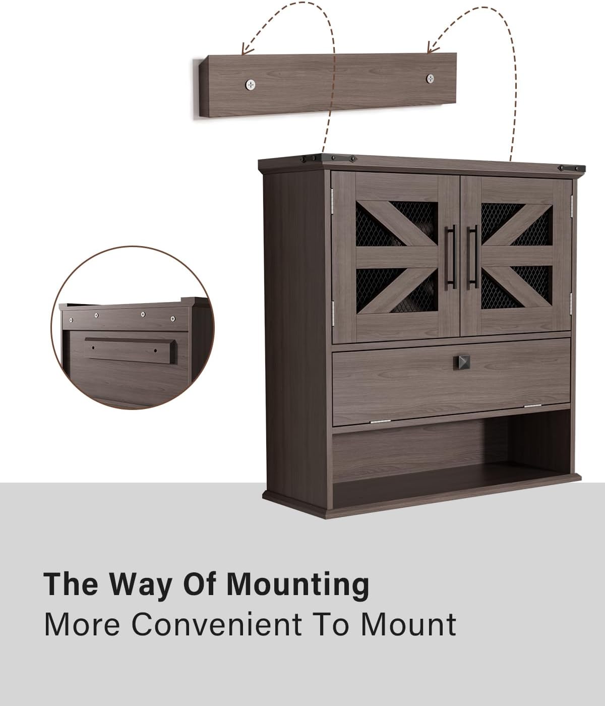 Bathroom Wall Cabinet with 2 Door Adjustable Shelves, Over The Toilet Storage Wall Mounted Medicine Cabinets for Bathroom Laundry Room