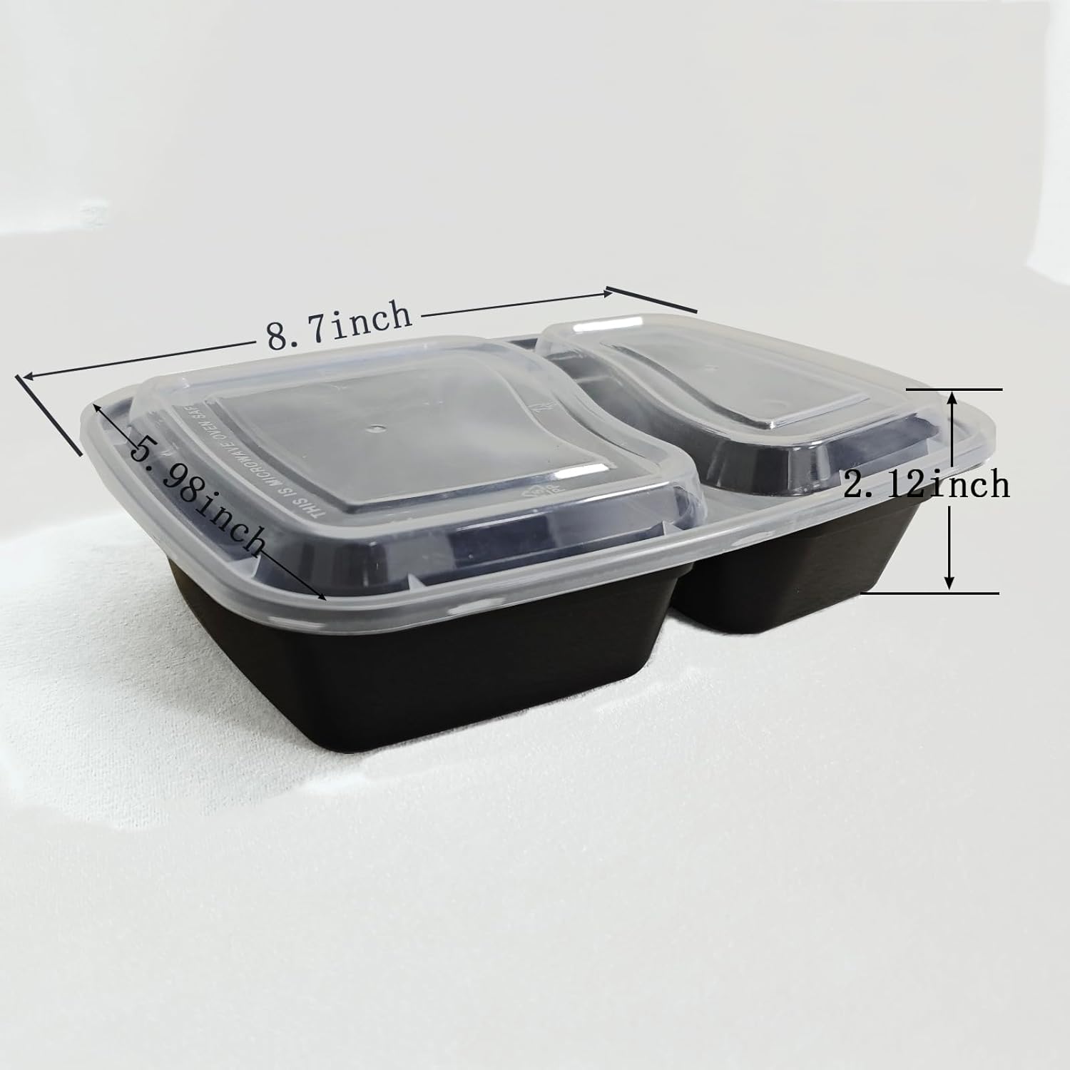 100pc 28 Oz 2-Grid Meal Prep Containers disposable, Plastic Food Take Out Containers With Lid, Take Out Containers Disposable, Reusable food storage containers,Microwave Freezer Dishwasher Safe