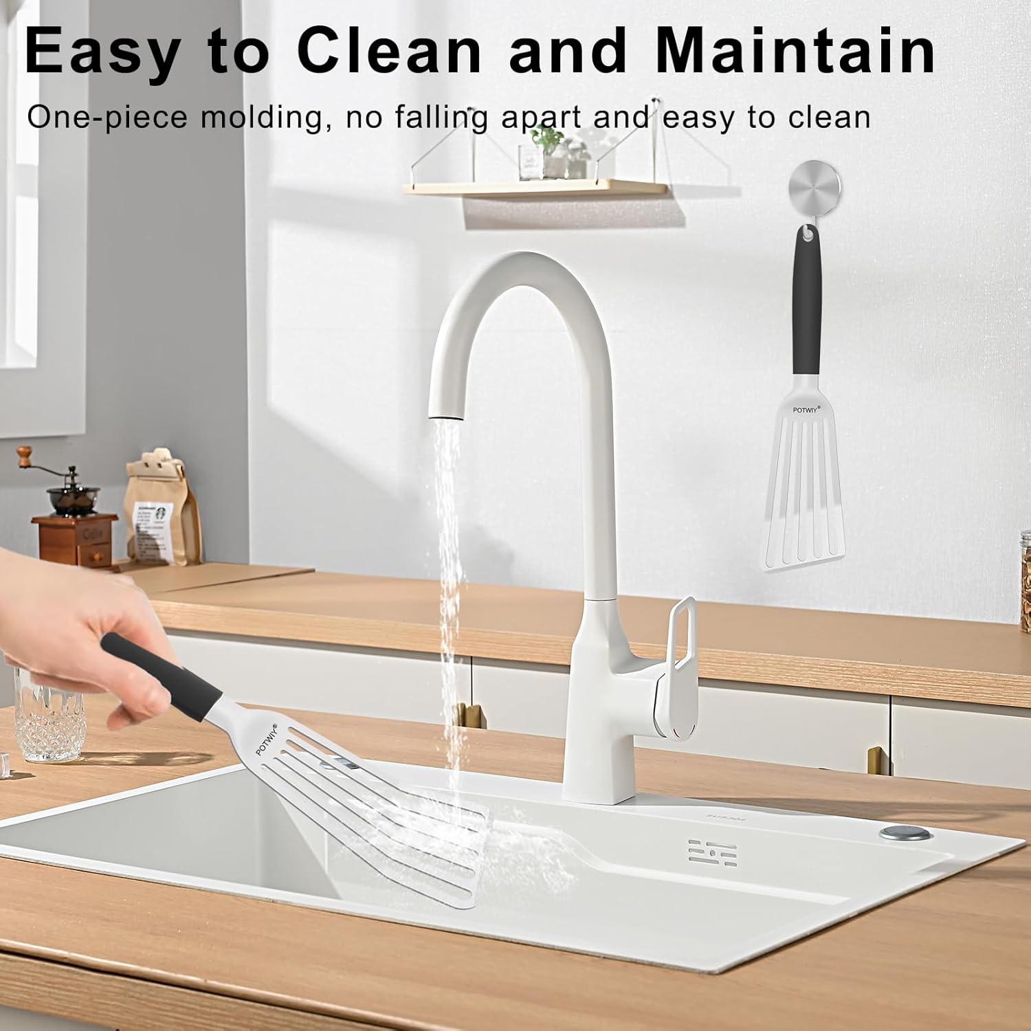 - Precision Blade Design: With a wide surface area, the curved end is matched with a flexible thin beveled edge, which can accurately slide into the bottom of delicate food without sticking, and the slotted spatula design is easy to drain excess grease