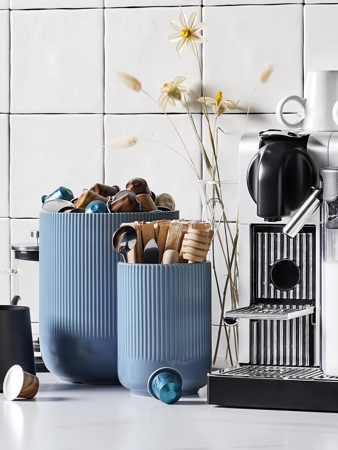 LE TAUCI Utensil Holder, 7.3"+5.4" Ceramic Kitchen Utensil Holder for Countertop, Large Cooking Utensil Crocks for Kitchen Counter, Morden Utensil Organizer for Spatula, Set of 2, Dusty Blue