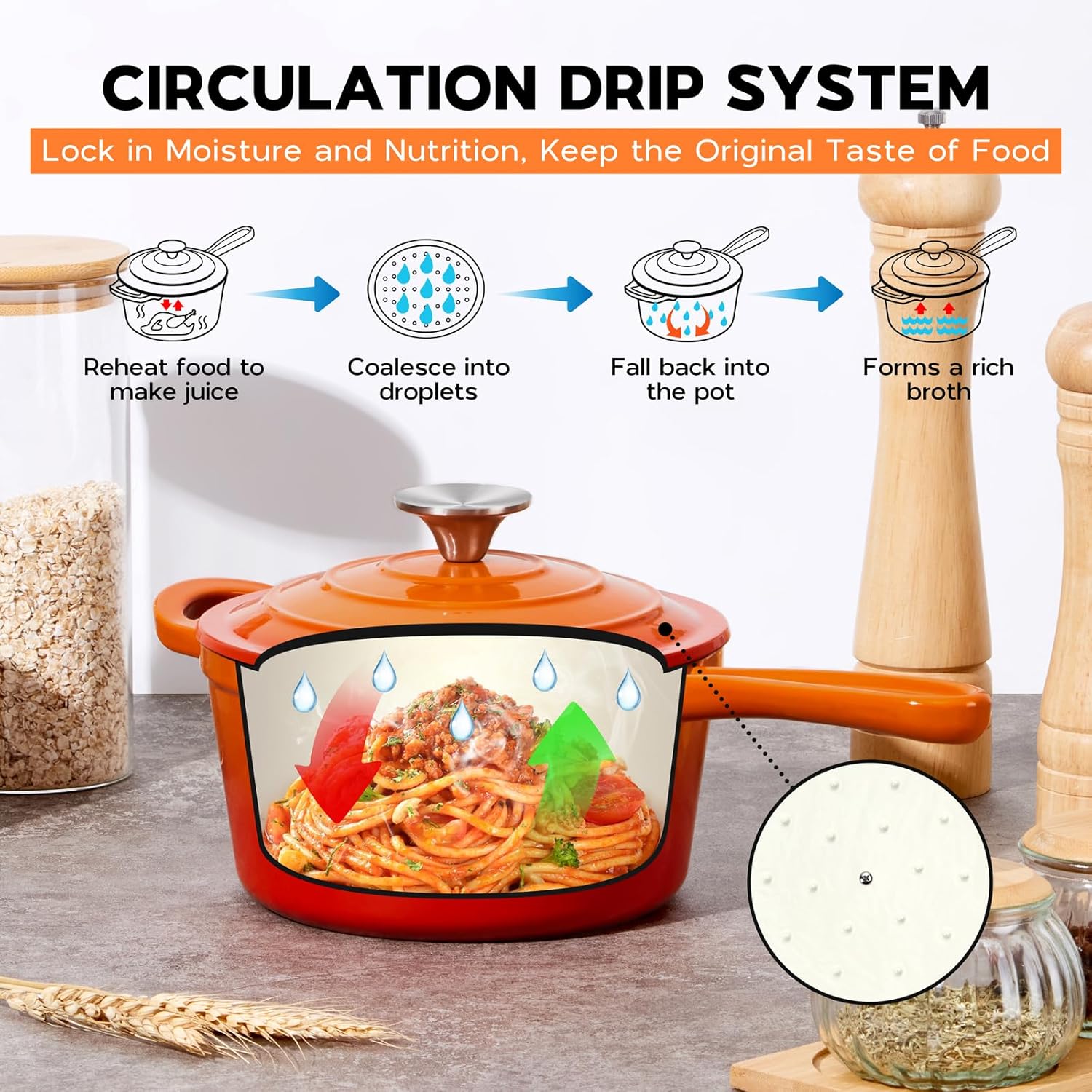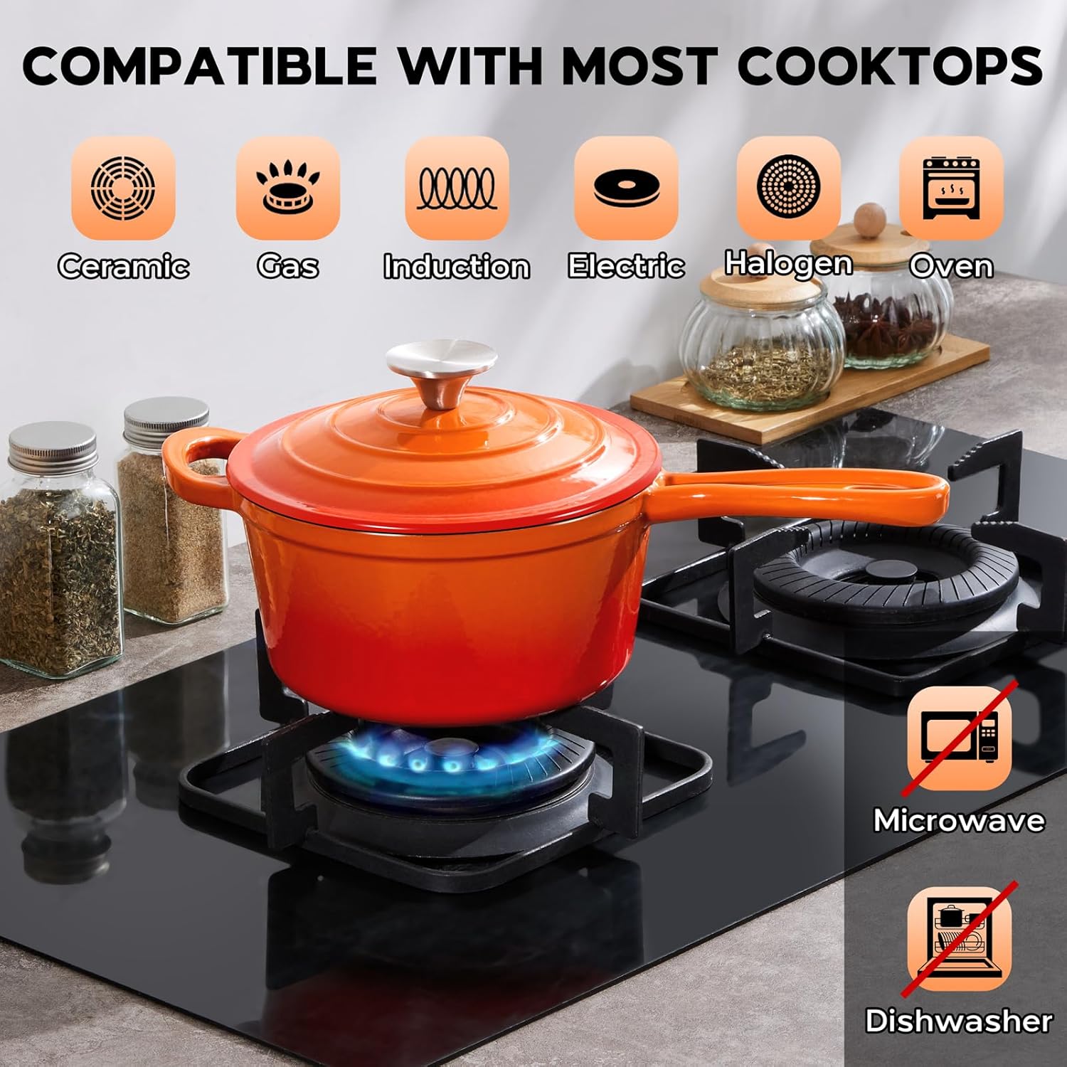 Enameled Cast Iron Sauce Pan Pot, Onader 1QT Saucepan with Lid, Small Enamel Dutch Oven Kitchen Cooking Pot – Sunset Orange
