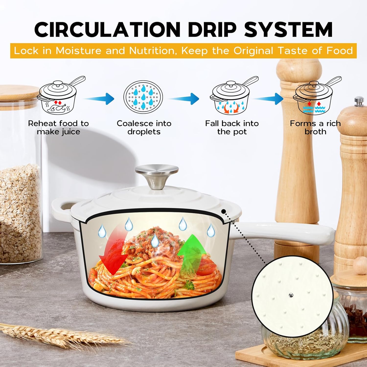 1QT Sauce Pan, Onader Enameled Cast Iron Saucepan Dutch Oven Pot with Lid, Small Cooking Sauce Pot, Nonstick & Oven Safe – White
