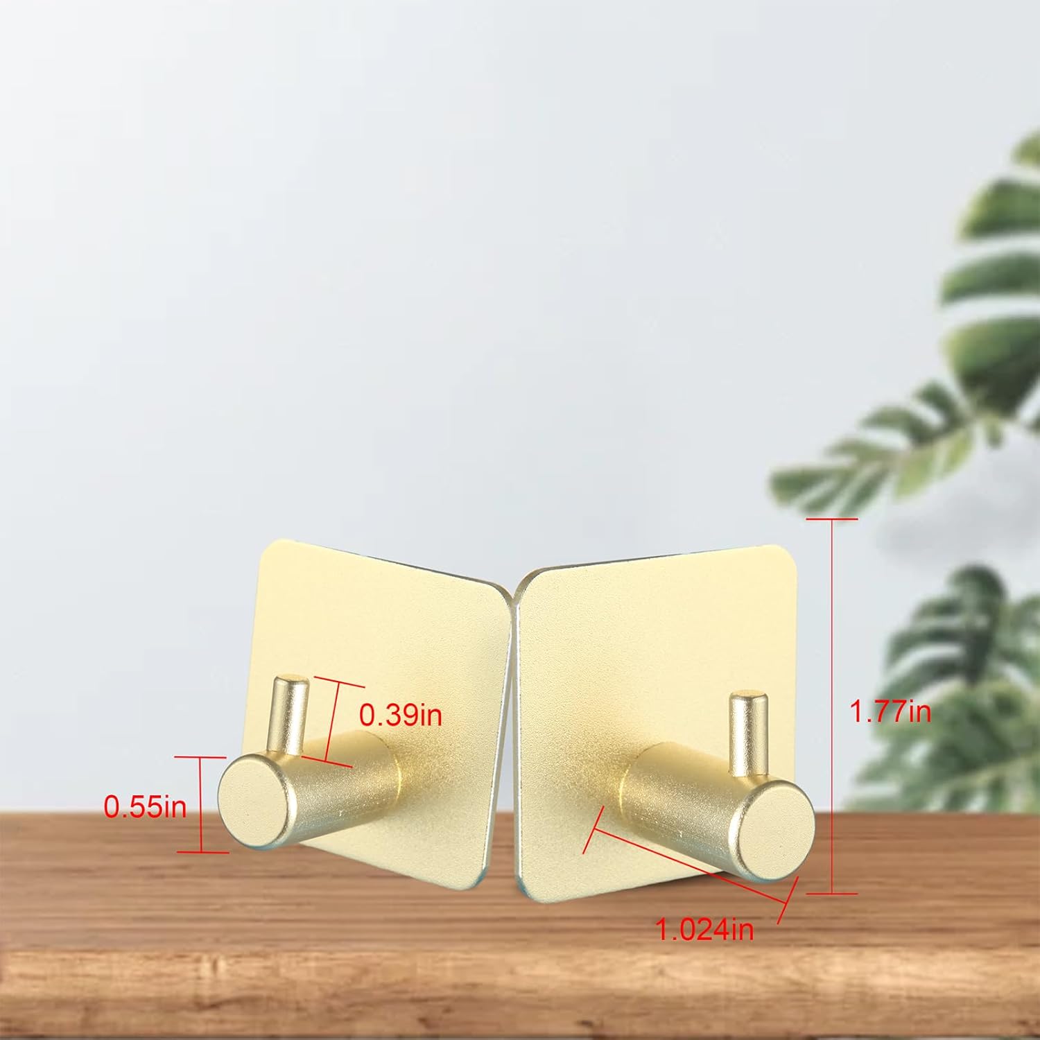 Aluminum Wall Hooks, No Drill Damage-Free Adhesive Hook, Product for Hanging Heavy Duty for Bathroom Kitchen Home (Single Square Gold Hook, 4)