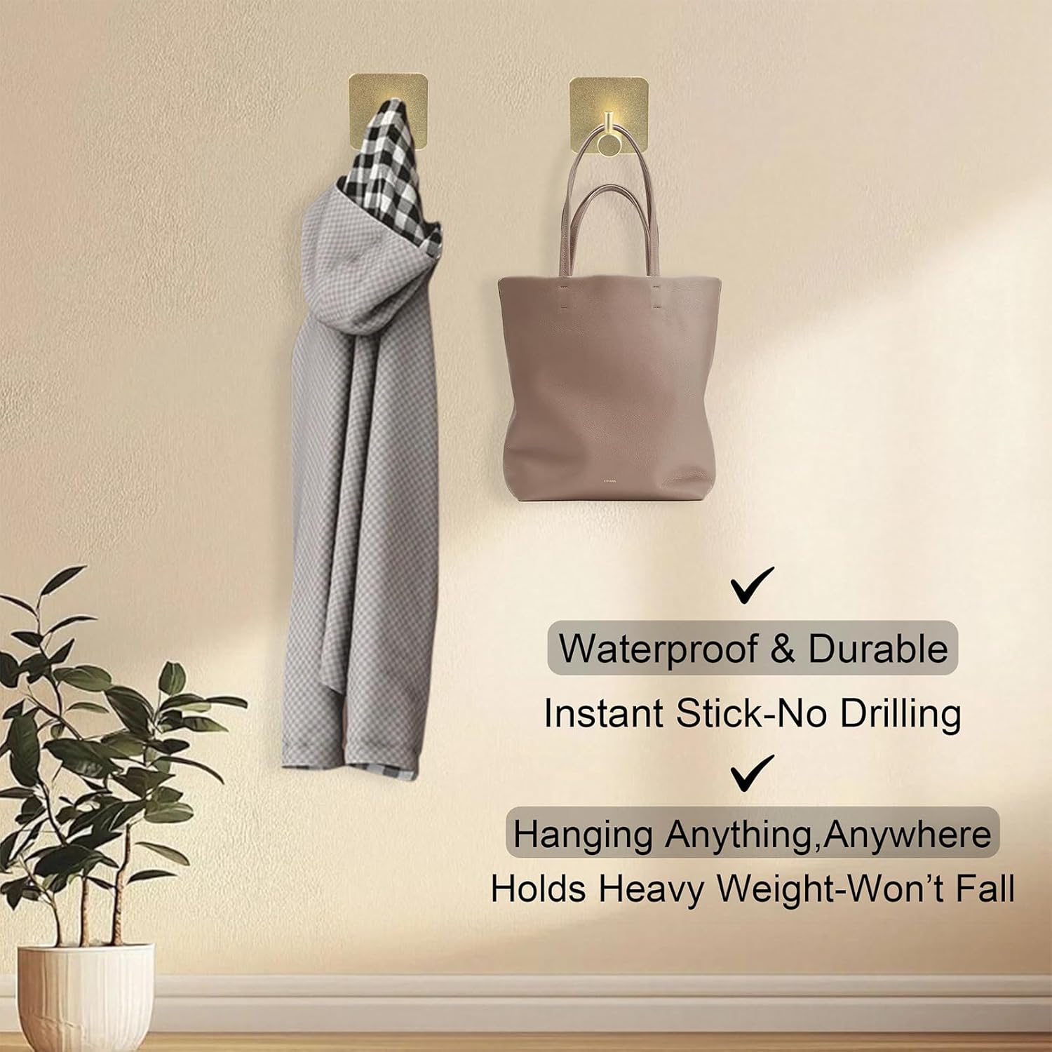 - 【Ultra-Strong Adhesive – Holds Up to 6 lbs】 JOYLUCK adhesive hooks feature premium adhesive backing for a strong, reliable hold (up to 6 lbs per hook). Perfect for hanging coats, towels, keys, decorations, and more without drilling. The industrial-grade adhesive ensures long-lasting durability on tile, glass, wood, and metal surfaces. (Weight capacity may vary by surface.)