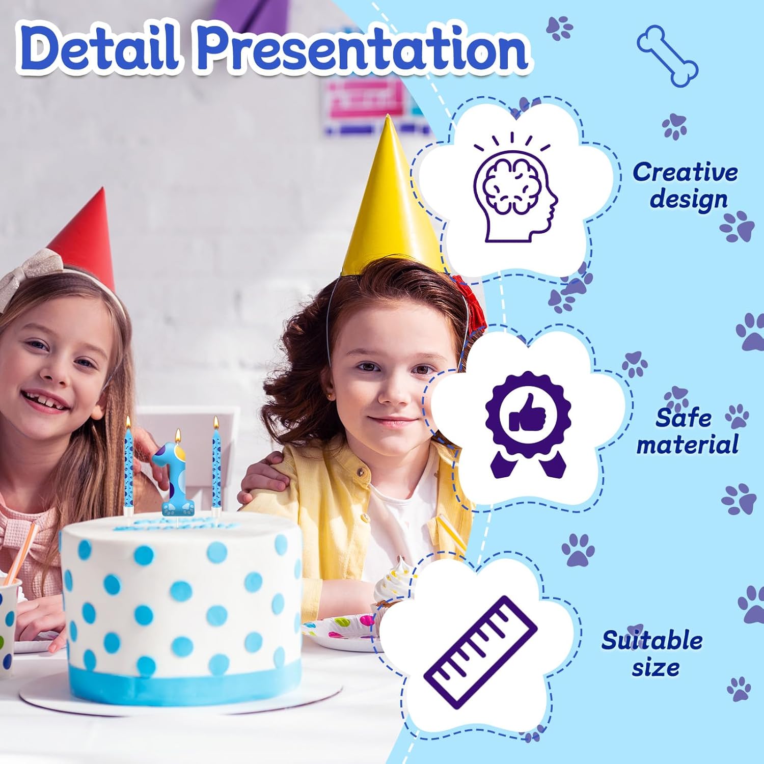 - Packaging: You will receive 12pcs and number 1 blue dog paw birthday candle comes individually wrapped for freshness and convenience! With a charming paw-print design and vibrant blue hues, these candles are perfect for creating a cohesive theme. Kids will adore the playful patterns, while parents love the hassle-free setup for dog-themed birthday parties!