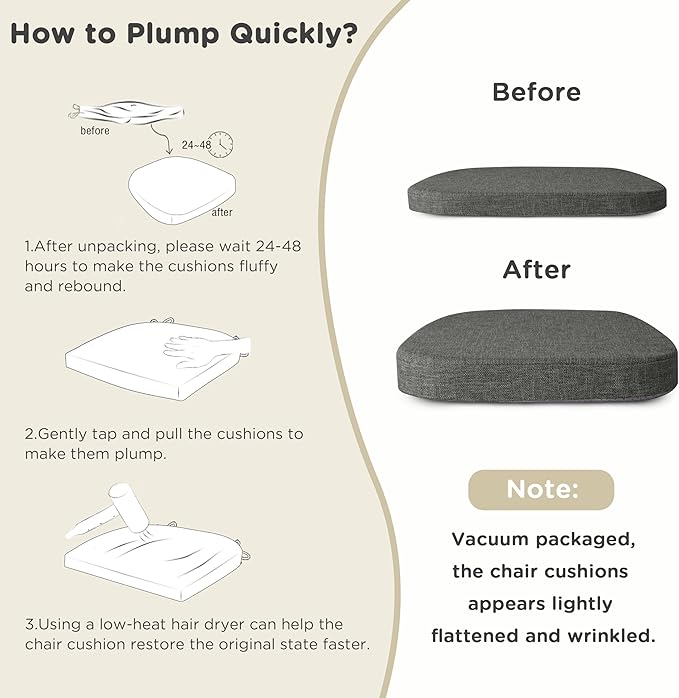 - Perfect Fit Size: Designed to snugly fit 14x14 Inch standard metal chairs, metal barstools, and wooden highchairs. Note: Cushions arrive vacuum-packed; allow 24-48 hours after opening for the high-quality foam to fully expand for optimal comfort and thickness.