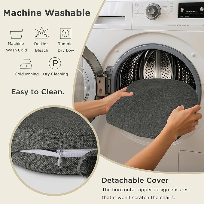 - Easy to Clean & Removable Cover: 14x14 chair cushions with a fully removable, machine-washable cover. The clever hidden zipper allows simple foam insertion upon arrival and easy future removal for washing, while protecting your chairs from scratches. Simple Assembly is required!