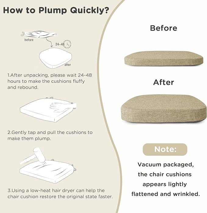- Perfect Fit Size: Designed to snugly fit 14x14 Inch standard metal chairs, metal barstools, and wooden highchairs. Note: Cushions arrive vacuum-packed; allow 24-48 hours after opening for the high-quality foam to fully expand for optimal comfort and thickness.