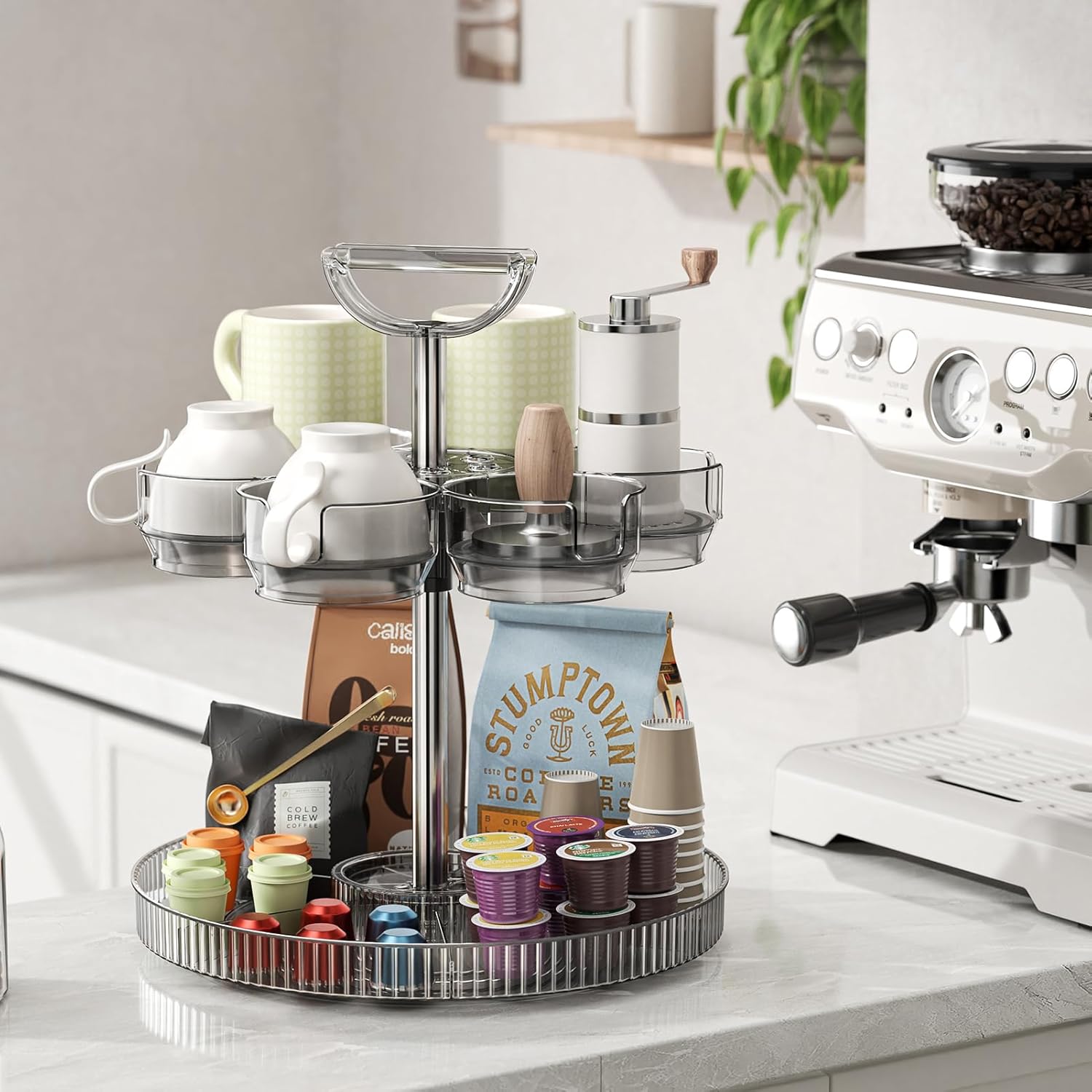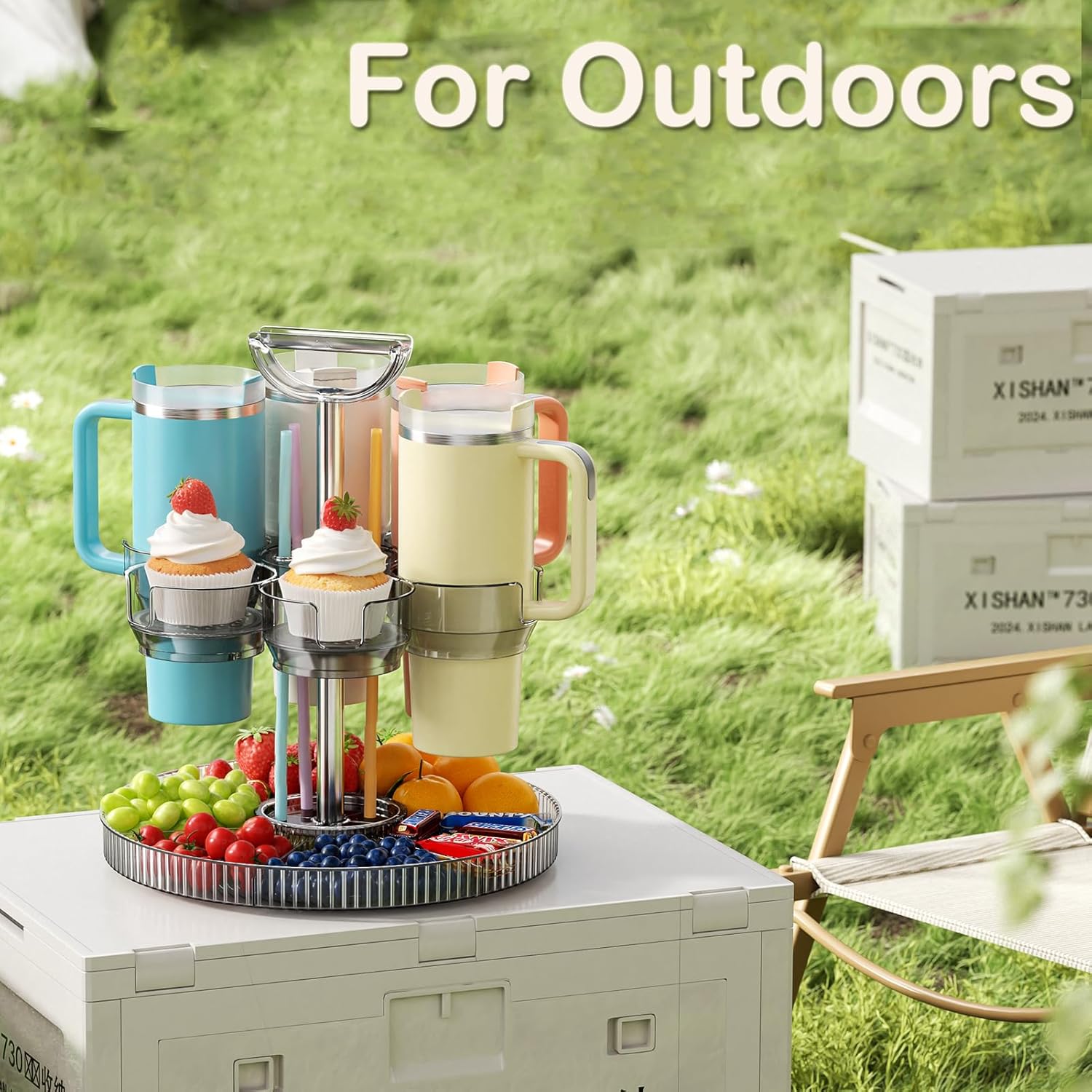 - Rotating Stanley Cup Holder, Portable Water Bottle Organizer for 6 Stanley 40 oz & Mug, Adjustable Lazy Susan Organizer for Table Top Cabinet Home Countertop Pantry Shelf Tumbler Lid Organizer