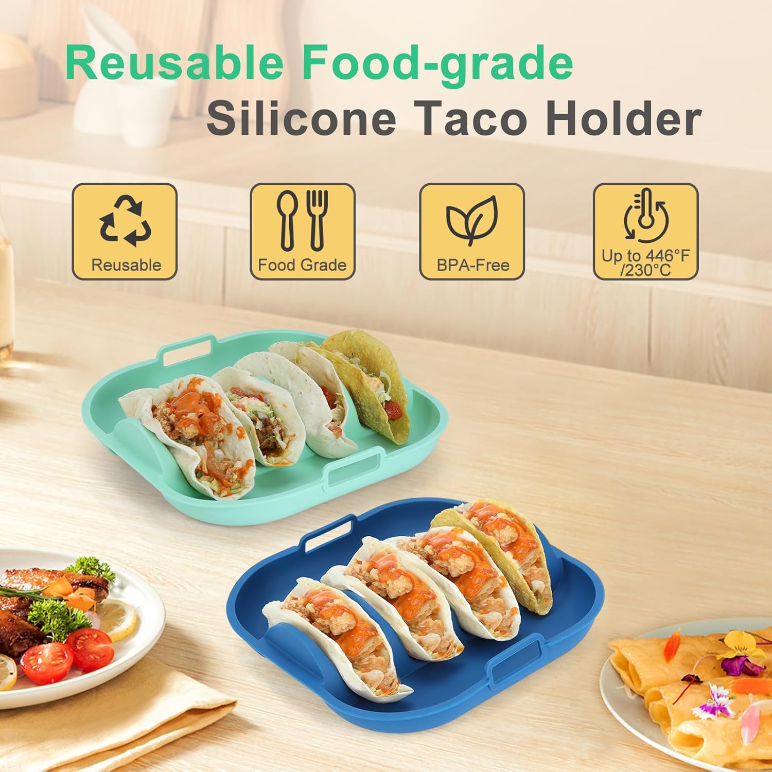 - Durable & Easy to Clean: Our taco shell holders are very easy to wash by hand or in a dishwasher. Our silicone taco holders can be reused and are more durable, economical and cost-effective than disposable taco holders and plastic taco holders. If you are looking for a taco shell holder, our silicone taco shell holder are definitely a good choice.