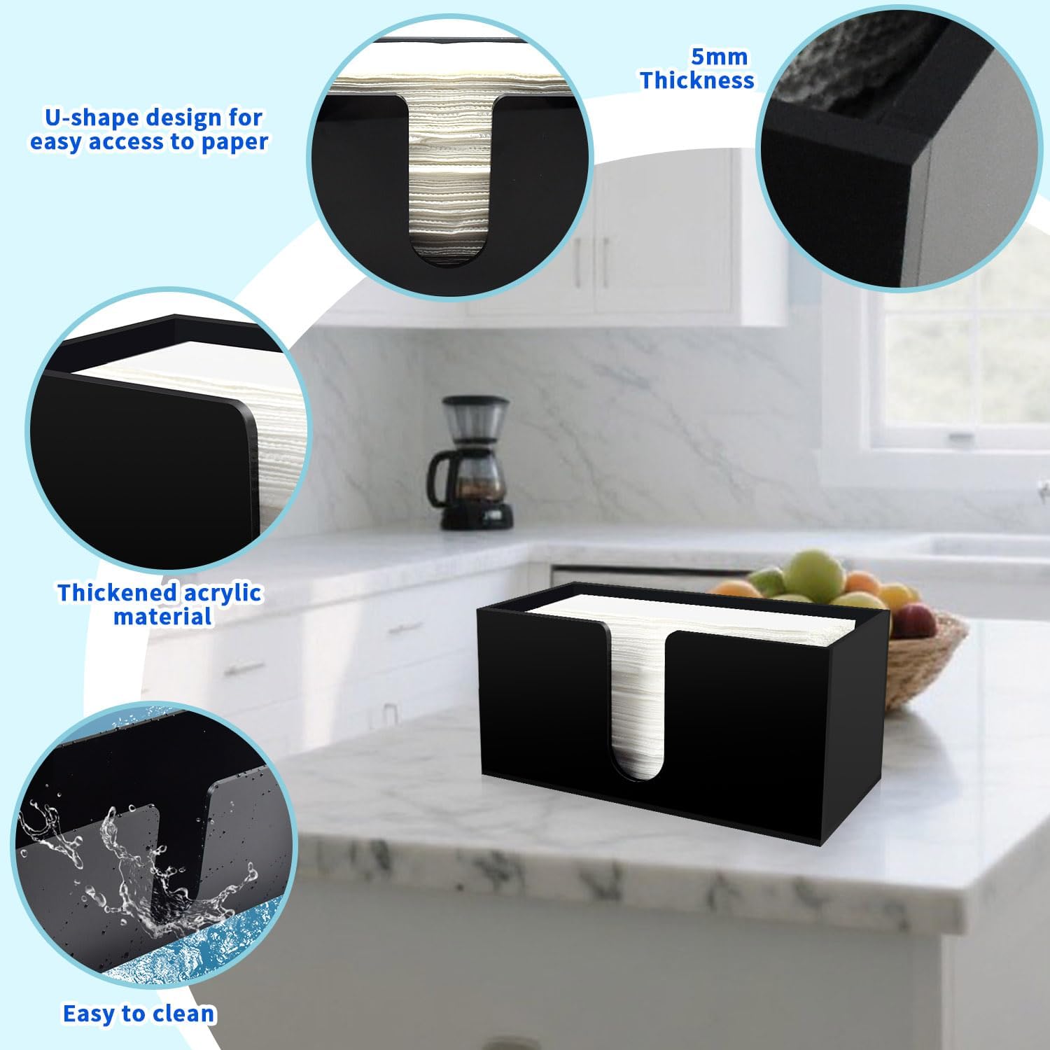 Paper Towel Holder for Countertop,Black Acrylic Napkin Dispenser-Multifold/C-Fold/Z-Fold Trifold Paper Towel Dispenser for Bathroom Kitchen Restaurant Toilet - Durable 5mm Thick(4)