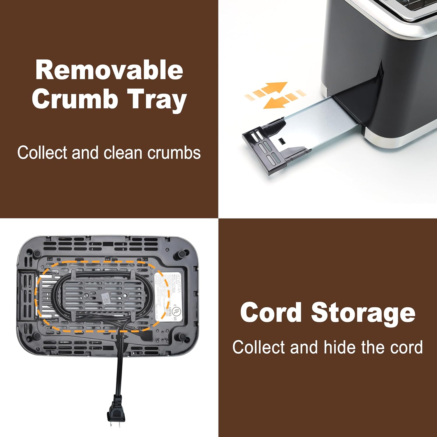 - ššš¦šØšÆššš„š šš«š®š¦š šš«šš² ššØš« ššš¬š² šš„ššš§š¢š§š - Cleaning is quick and simple thanks to the slide-out removable crumb tray. It catches every crumb to keep your kitchen clean, while the stainless steel surface stays smudge-free and sleek.