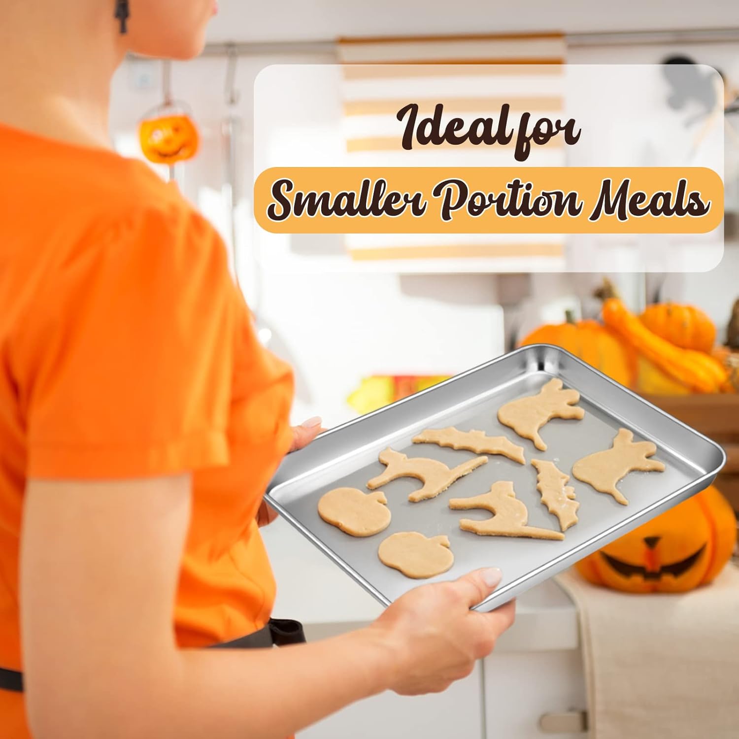 - 2-PIECE COMBO FOR COMPACT OVENS: Includes 1 baking sheet (9.4 x 7.3 x 1 inch) and 1 wire rack (8.6 x 6.2 x 0.6 inch), Specially designed to fit most small toaster ovens, Perfect for baking cookies, roasting bacon, broiling meat, cooling pastries, or making smaller portion meals
