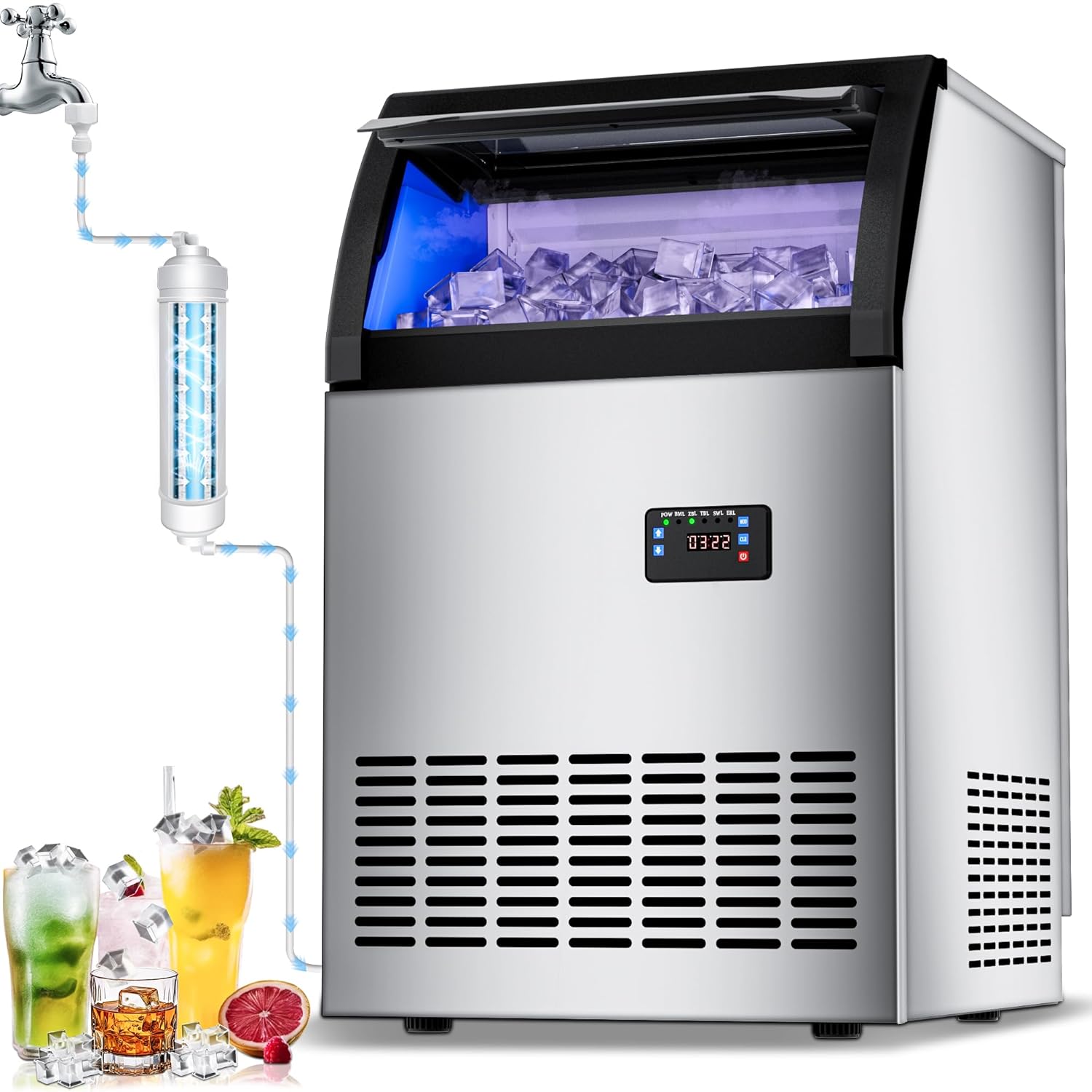 - Durable, Reliable & Safety: AMADVI commercial ice maker features stainless steel construction for durability, an overall thickened foam layer for good thermal insulation, and a food-grade PP liner to ensure a clean and hygienic ice-making environment that meets the highest health and safety standards, making it ideal for both home and commercial use.