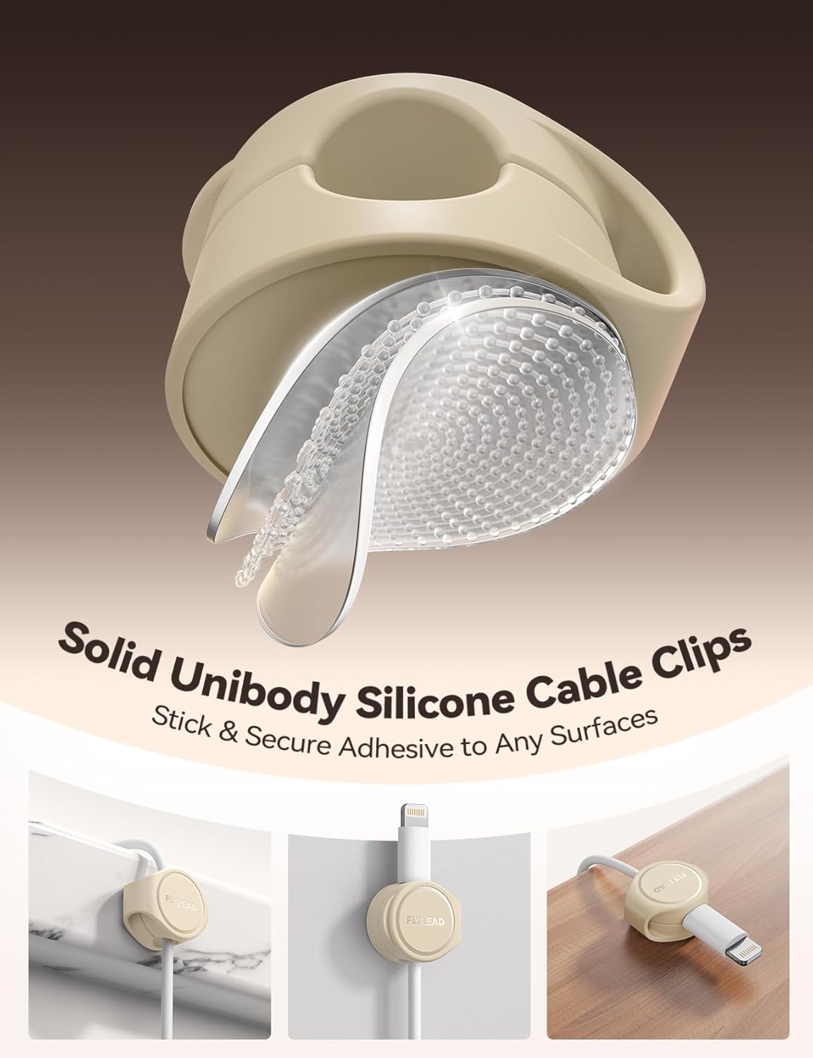 - Adhesive-enhanced No-Residue Acrylic Pad: The capability of bonding firmly to different surfaces acrylic pad is used in the FLYLEAD cable holder, while ensuring it won't leave any ugly marks on the surface after removing the cable organizer. Simply peel off the adhesive backing and affix the adhesive cable clips to a cleaned surface. Maintain firm pressure for 30 seconds(Note: For optimal adhesive performance, allow 24 hours before use), and it will then be ready for use. Additionally, two replacement adhesive pads are included with the product to facilitate reapplication of the organizer