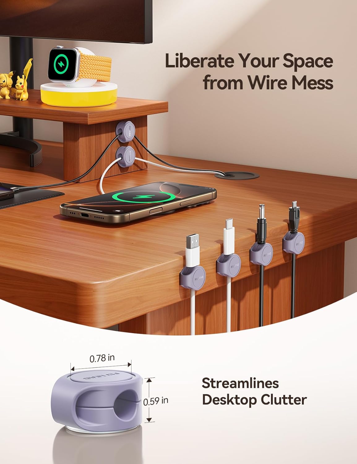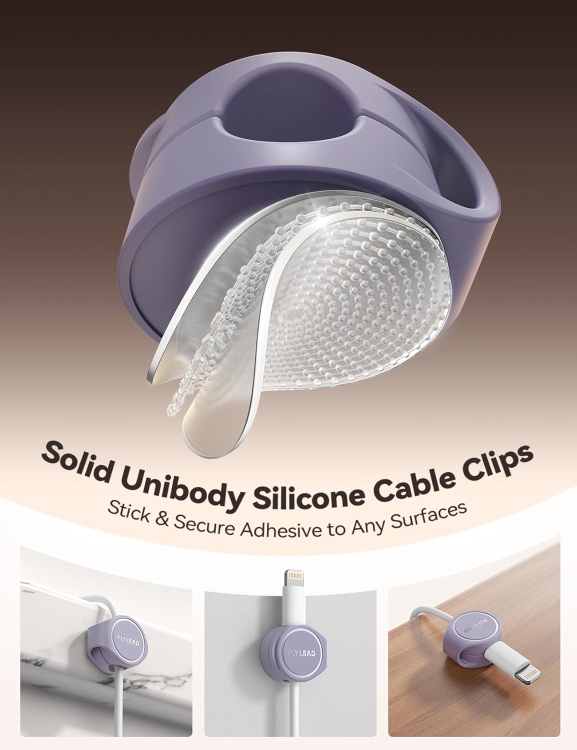 - Special Designed Silicone Magnetic Cable Clips: One-piece silicone molding design FLYLEAD cord organizer with better moldability, the soft silicone material makes this cable organizer more malleable and skin-friendly. After over 10,000 times of tensile tests, the flexible upper and lower joints never broke. With the strongest N55 magnets, covers can be tightly adherent to each other, soft silicone-made FLYLEAD cord holder could embrace cables, which won't squeeze or damage the cables