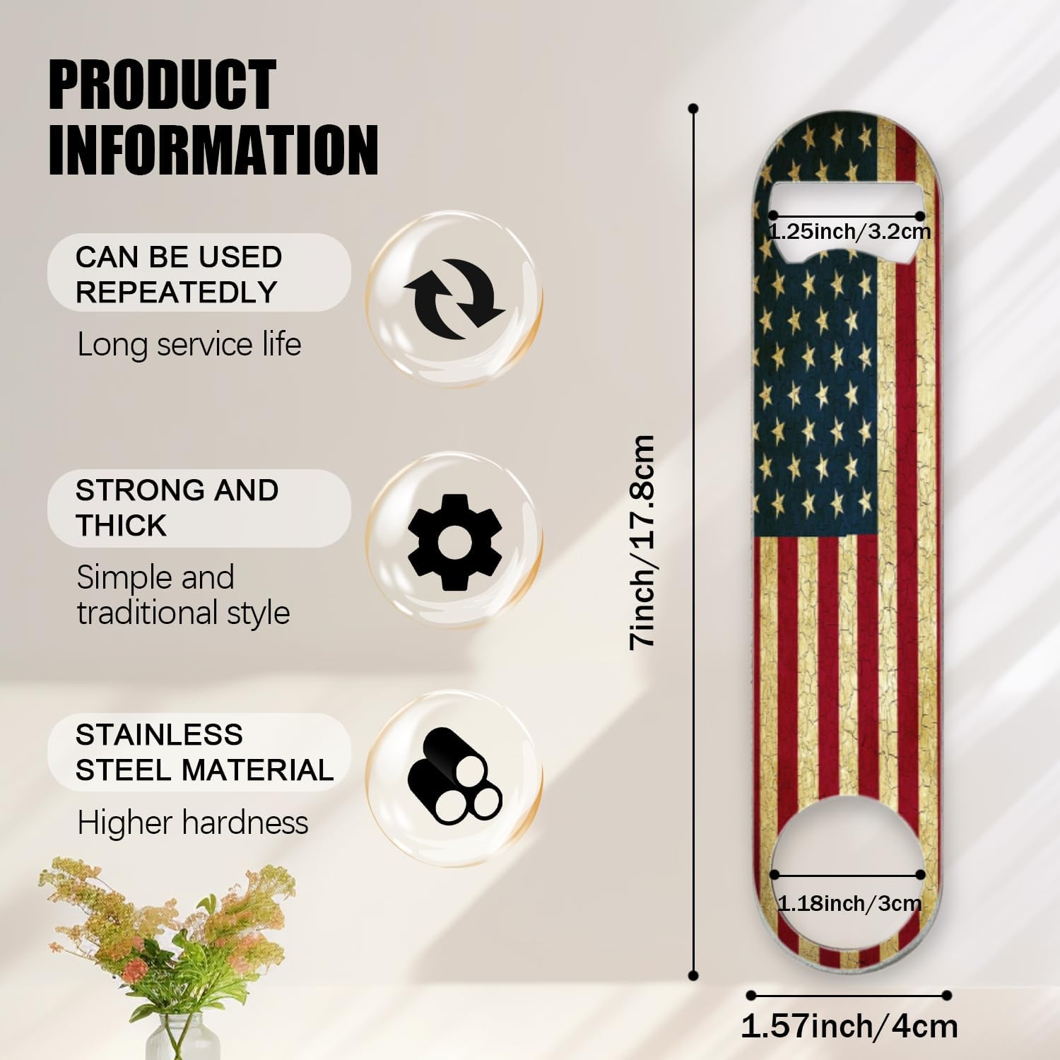2 PACK Beer Bottle Opener, Stainless Steel Flat Bottle Openers,7 inch Metal Decor,Vintage United States Of America Flag